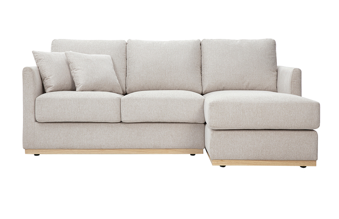 Canapé d'angle beige 3 places livré prêt à monter.