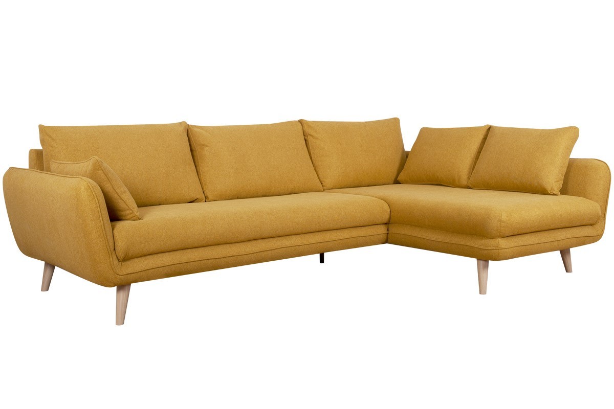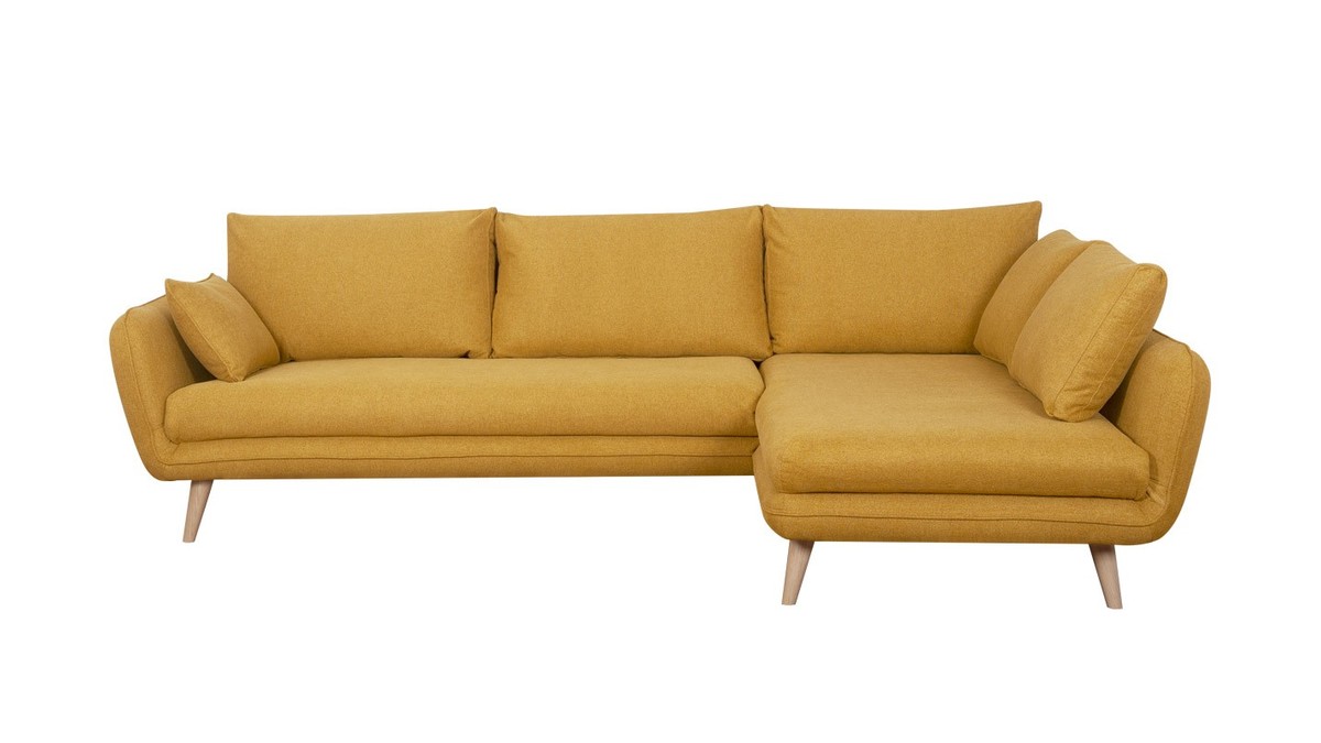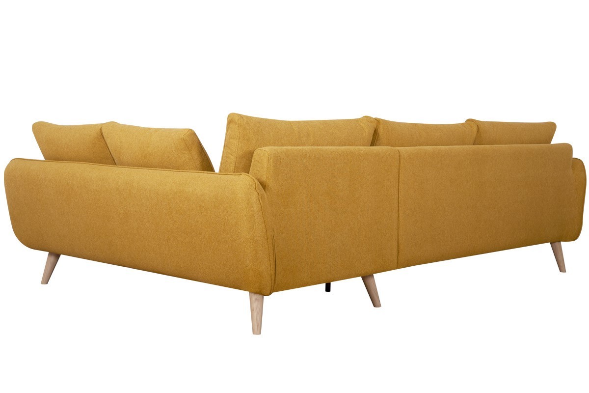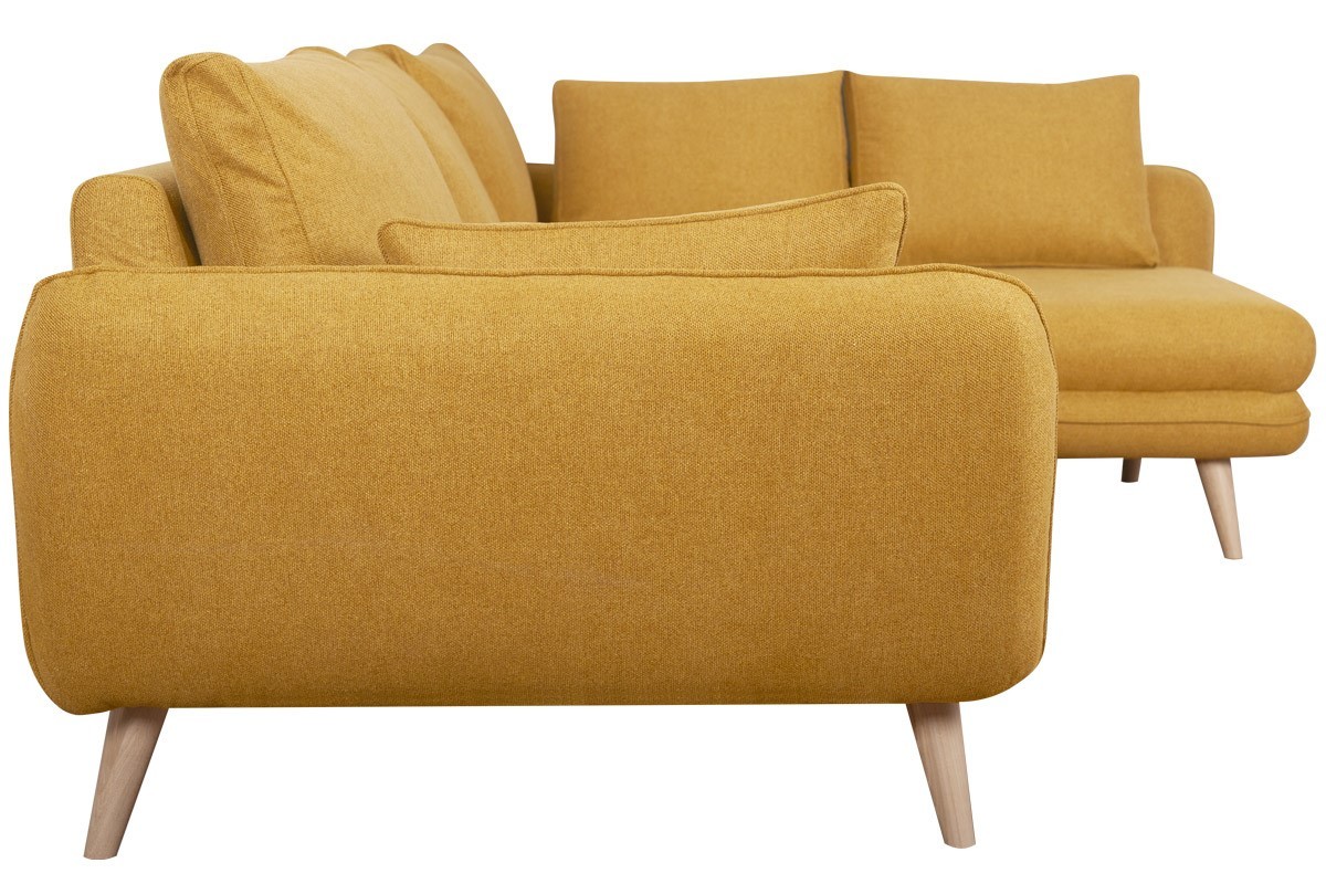 Ce canapé d'angle est une assise aussi pratique que jolie. Son revêtement en polyester jaune cumin en fait un siège dans l'air du temps. Il est accompagné d'un piètement compas en hêtre massif, un bois clair et chaleureux. Sa forme épurée, ses lignes courbes et ses matériaux rappellent tout ce qui fait le charme du style nordique. Pour un salon 100 % scandinave, on complète ce canapé d'angle avec des tables gigognes en bois.