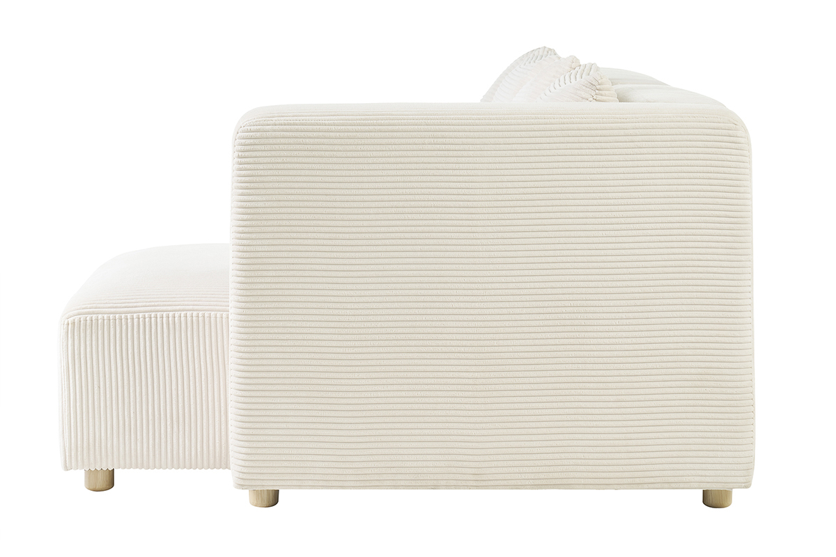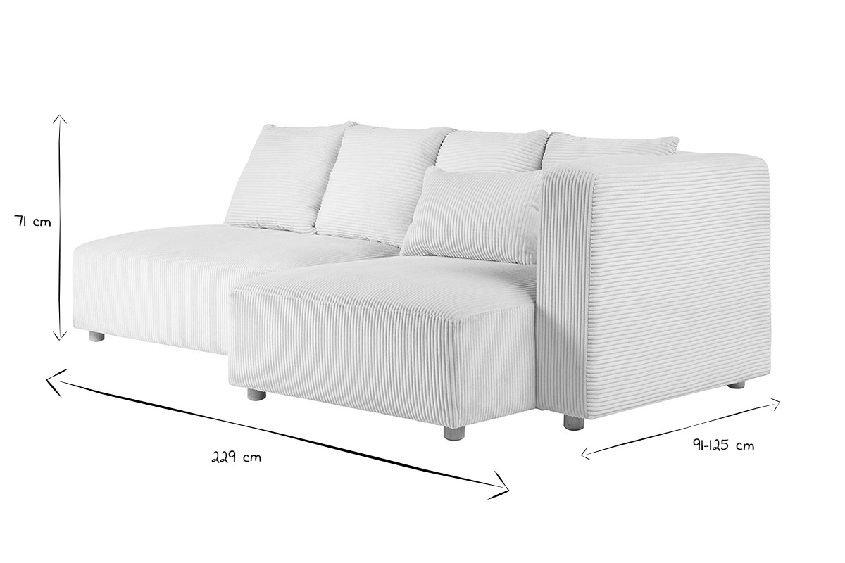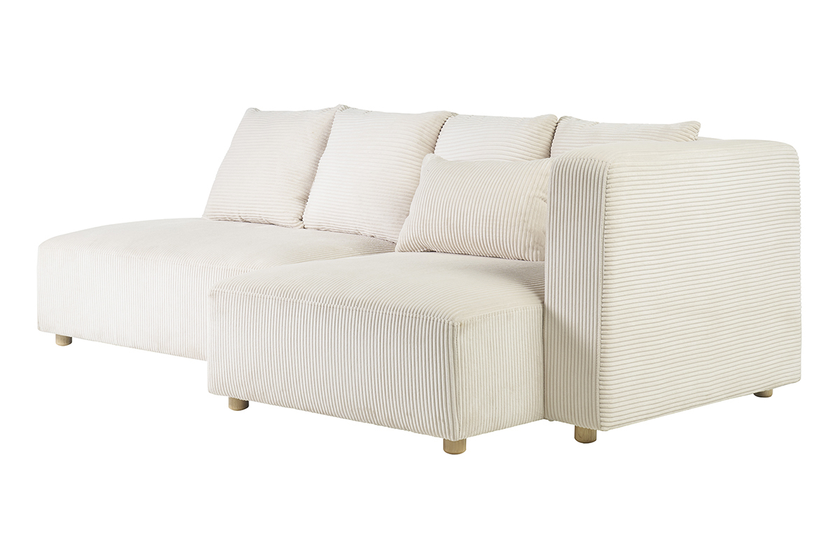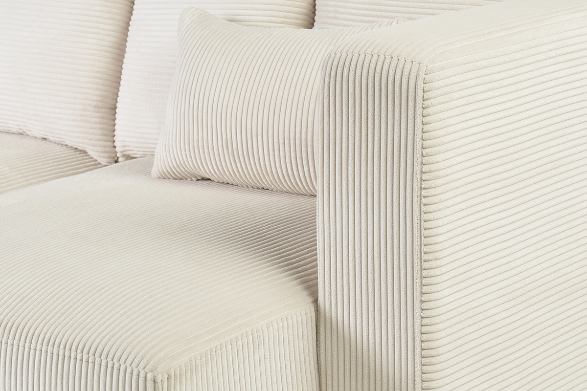 Une ampleur d'assise généreuse, une accumulation de coussins qui invite irrésistiblement à la détente, un revêtement d'une douceur enveloppante... le canapé beige HARLEM incarne l'alliance parfaite entre confort absolu et design contemporain. L'harmonieuse association de formes douces et d'un tissu velours côtelé de qualité confère à l'ensemble un style cocooning chic qui transformera instantanément l'atmosphère de votre salon. Sa teinte beige délicatement nuancée, à la fois intemporelle et polyvalente, se marie avec tous les styles de décoration, tandis que son piètement en bois massif soigneusement travaillé apporte une touche d'authenticité et de robustesse à l'ensemble. Ce canapé d'angle n'est pas simplement un meuble, mais une véritable pièce maîtresse qui traversera les années sans perdre de son élégance. Associé à une table basse en bois aux lignes épurées, il créera un espace nordique d'une élégance chaleureuse et accueillante, transformant votre pièce à vivre en un havre de paix où il fait bon se retrouver.