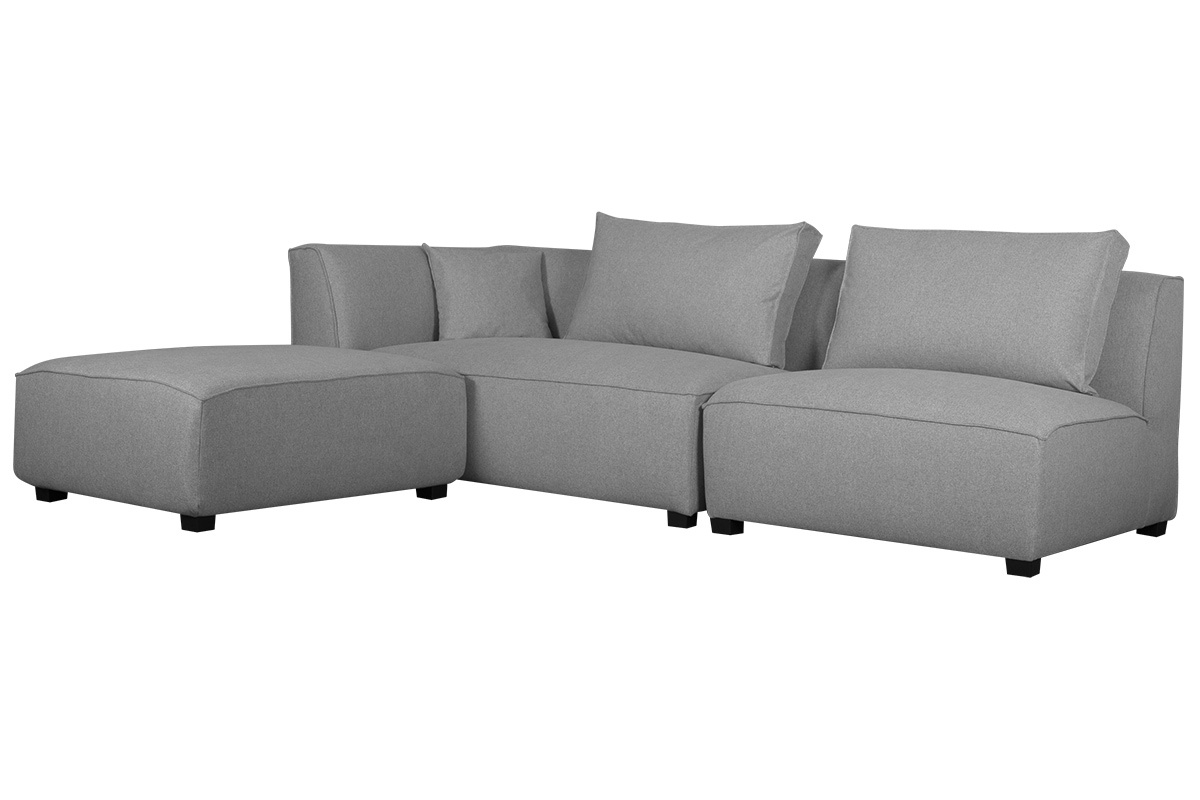 Soirées cocooning et grandes réceptions ont trouvé leur canapé idéal ! Ce canapé d'angle gauche en tissu gris clair est composé d'un module de canapé angle gauche, d'une chauffeuse simple et d'un grand pouf rectangulaire qui s'assemblent et se séparent à l'envi ! Disposez le pouf à droite comme à gauche pour former un canapé d'angle convivial parfaitement adapté à votre pièce de vie. Avec son assise épaisse et ses grands coussins de dossier, ce canapé modulable gris est un siège confortable. C'est une assise agréable et pratique qui s'adapte à votre quotidien.
