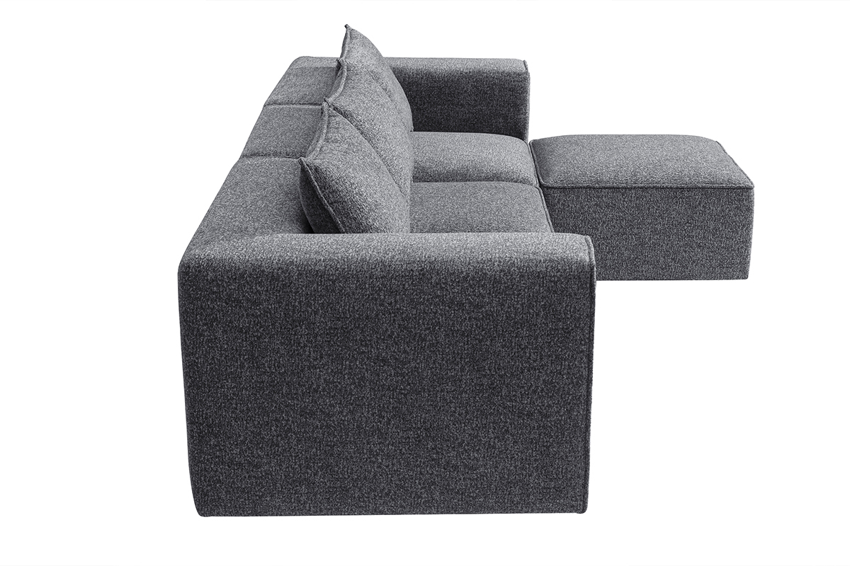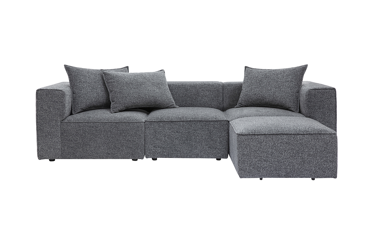 Le canapé d'angle KERRY se compose de quatre modules indépendants, vous permettant de créer différentes configurations : droit ou bien en angle, selon la disposition de votre espace. Cette modularité est un véritable atout pour ceux qui aiment repenser leur décoration régulièrement sans changer de mobilier. Les modules s’assemblent facilement, offrant une stabilité optimale une fois réunis.
