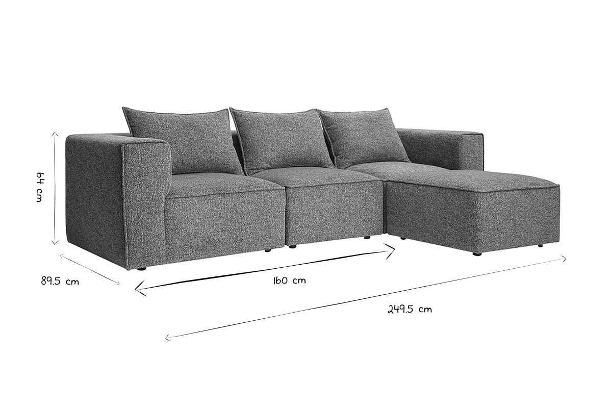 Conçu pour répondre aux besoins contemporains d’aménagement, ce canapé gris allie confort généreux et modularité intuitive. Avec ses dimensions totales de L249,5 x P89,5 x H64 cm, il est idéal pour les salons spacieux ou les pièces à vivre où l’agencement évolue selon les envies ou les occasions.