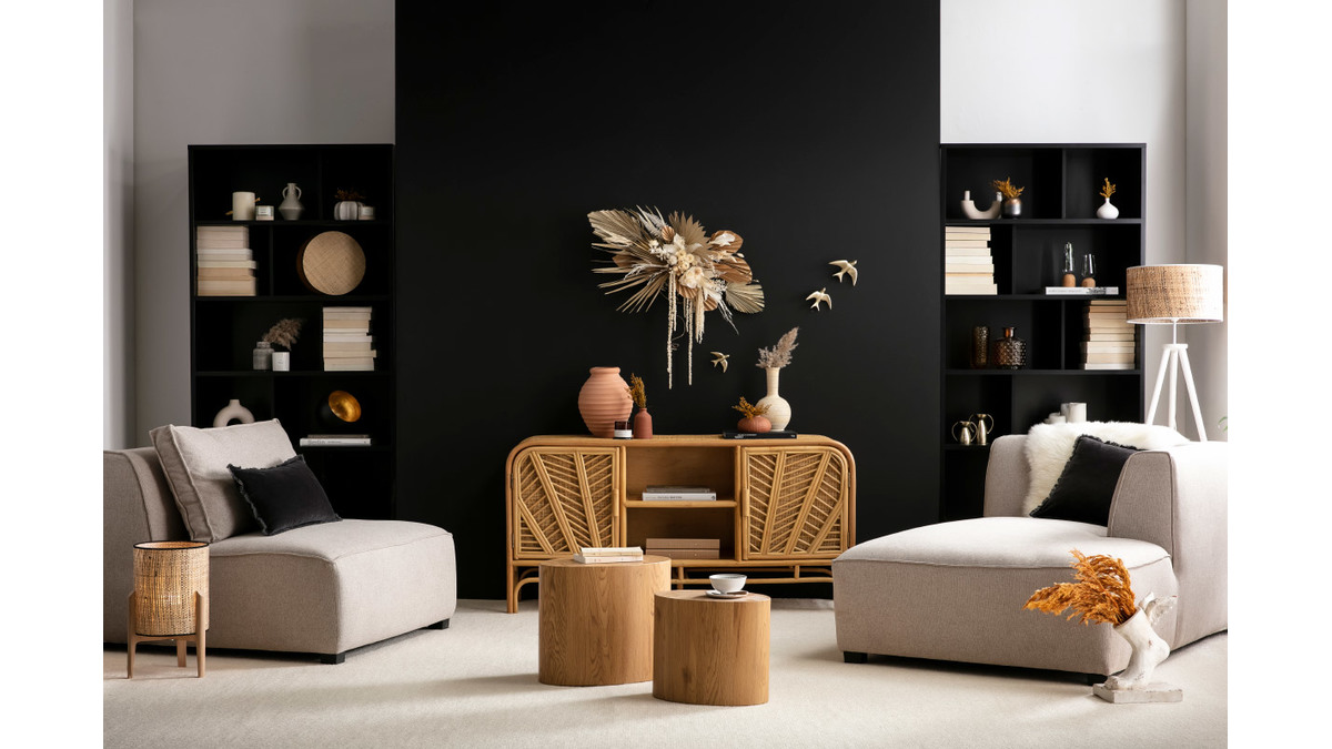 Avec sa chauffeuse 1 place à l'assise large et sa méridienne d'angle droit de 168 cm de long, ce canapé d'angle modulable beige naturel est un concentré de confort dans un format compact. Ses deux éléments aux formes généreuses s'utilisent aussi bien ensemble que séparément pour des soirées cocooning sur mesure. Réunies, chauffeuses et méridiennes forment un petit canapé d'angle contemporain au style élégant et cosy. Ces deux modules de canapé séparés, vous profiterez de deux sièges de salon confortables à disposer comme vous le souhaitez.