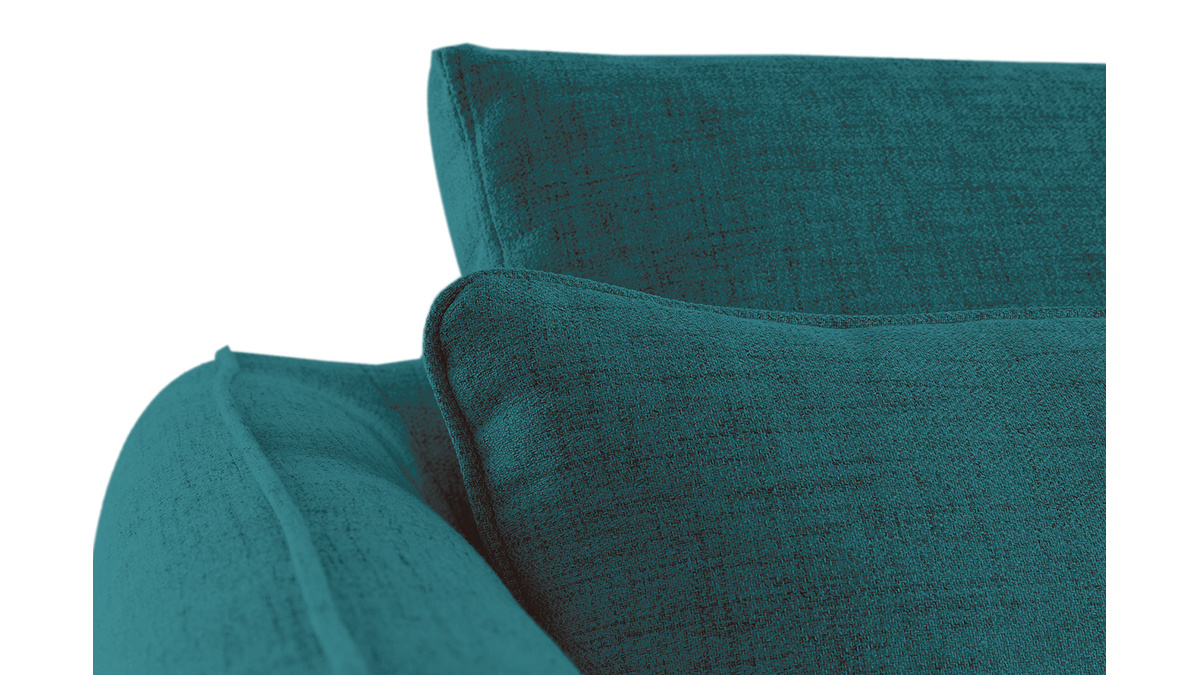 Ce canapé-lit 3 places bleu paon est habillé d'un tissu déperlant qui limite l'absorption et la pénétration des taches. Les liquides glissent sur la surface du tissu et forment des gouttes que vous pourrez enlever facilement à l'aide d'un chiffon doux.