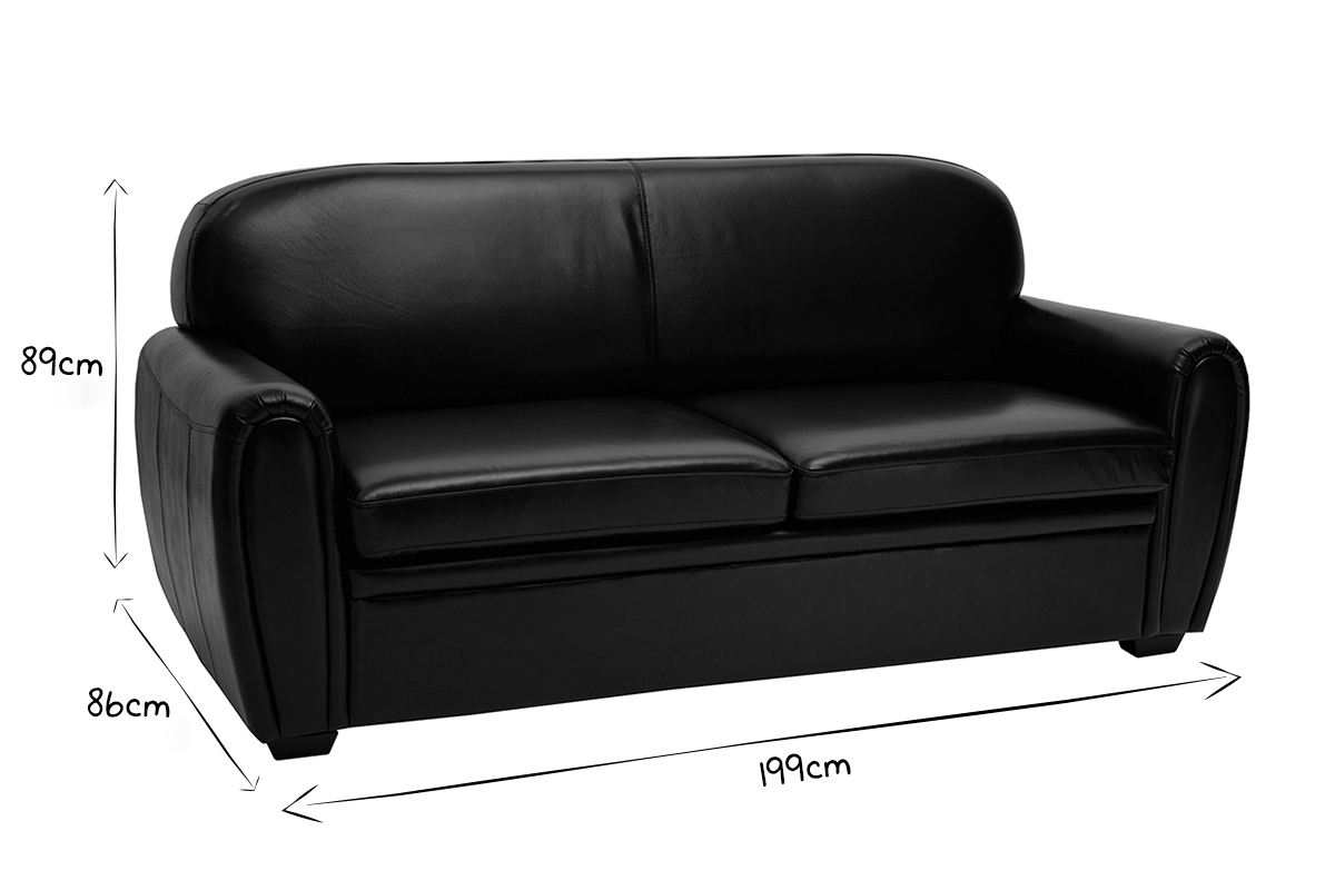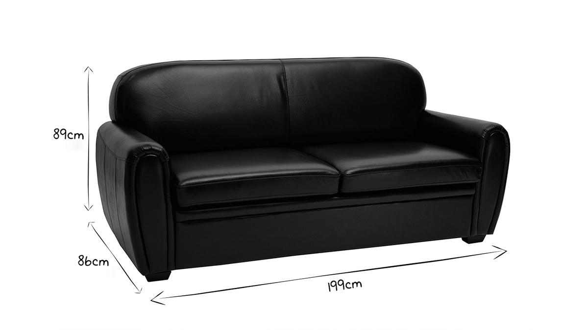 Grâce à ses dimensions (L199 x P86 x H89 cm), ce canapé cuir est un 3 places convertible peu encombrant. Ses coussins garnis d'une mousse de densité 35 kg/m3 offrent un confort d'assise ferme. En les retirant, CLUB se transforme en un clin d'oeil en couchage de L134 x L183 cm. Ce petit lit d'appoint est idéal pour recevoir des invités pour la nuit.