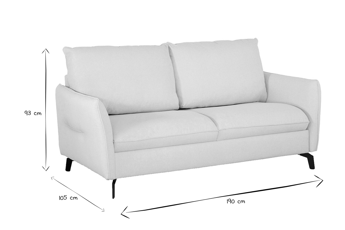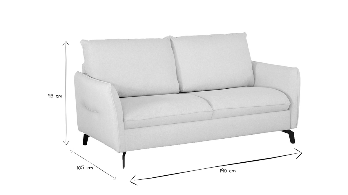 Allier esthétisme et confort ? Défi relevé ! Cadré par de discrets accoudoirs, et galbé par des coussins d'assise et de dossier garnis de mousse densité 30 kg/m³, ce canapé-lit confortable se distingue par ses dimensions L190 x P105 x H93 cm. Voilà un petit canapé 3 places convertible beige qui s'envisage volontiers dans un salon où chaque m² compte mais également en complément d'autres fauteuils dans un grand séjour. Et pourquoi pas dans un bureau ou une bibliothèque ?