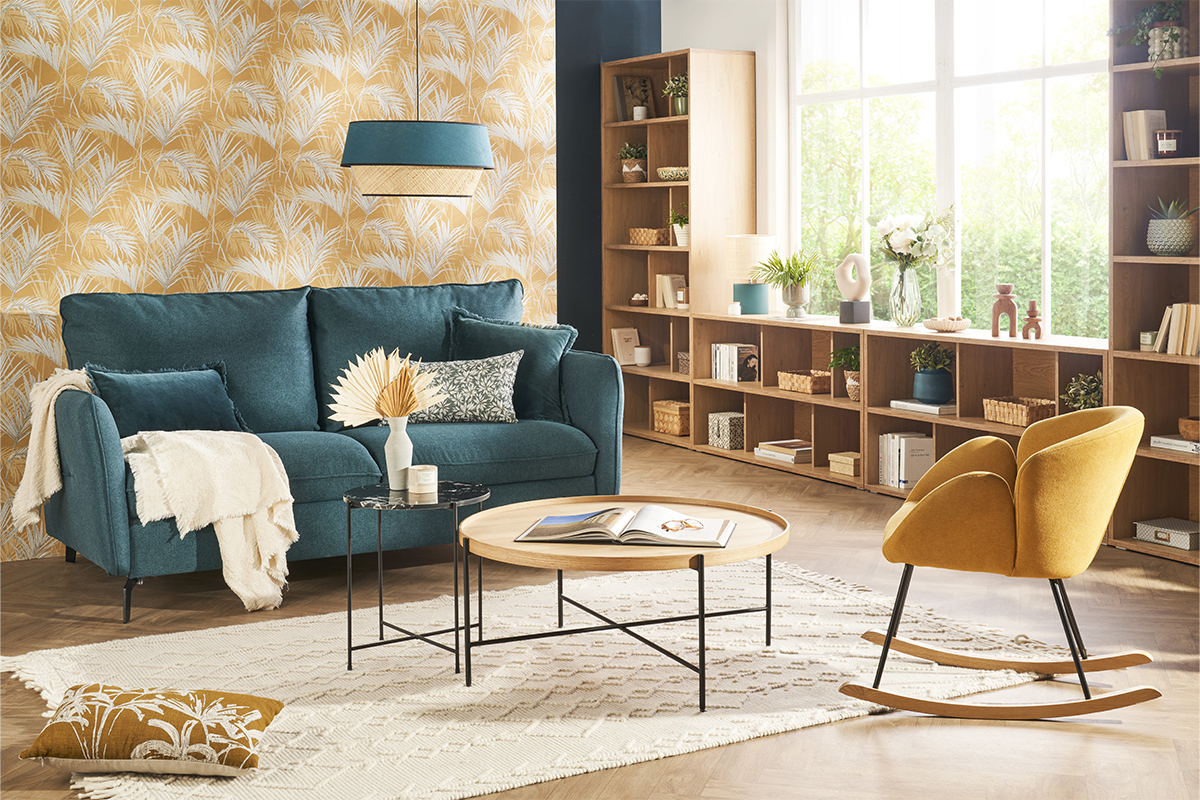 Écrin de douceur : disposez le duo tables basses et canapé LIAM sur un grand tapis duveteux. Parfait pour envelopper les pièces fortes de votre séjour et créer ainsi une ambiance chaleureuse et douillette à souhait !