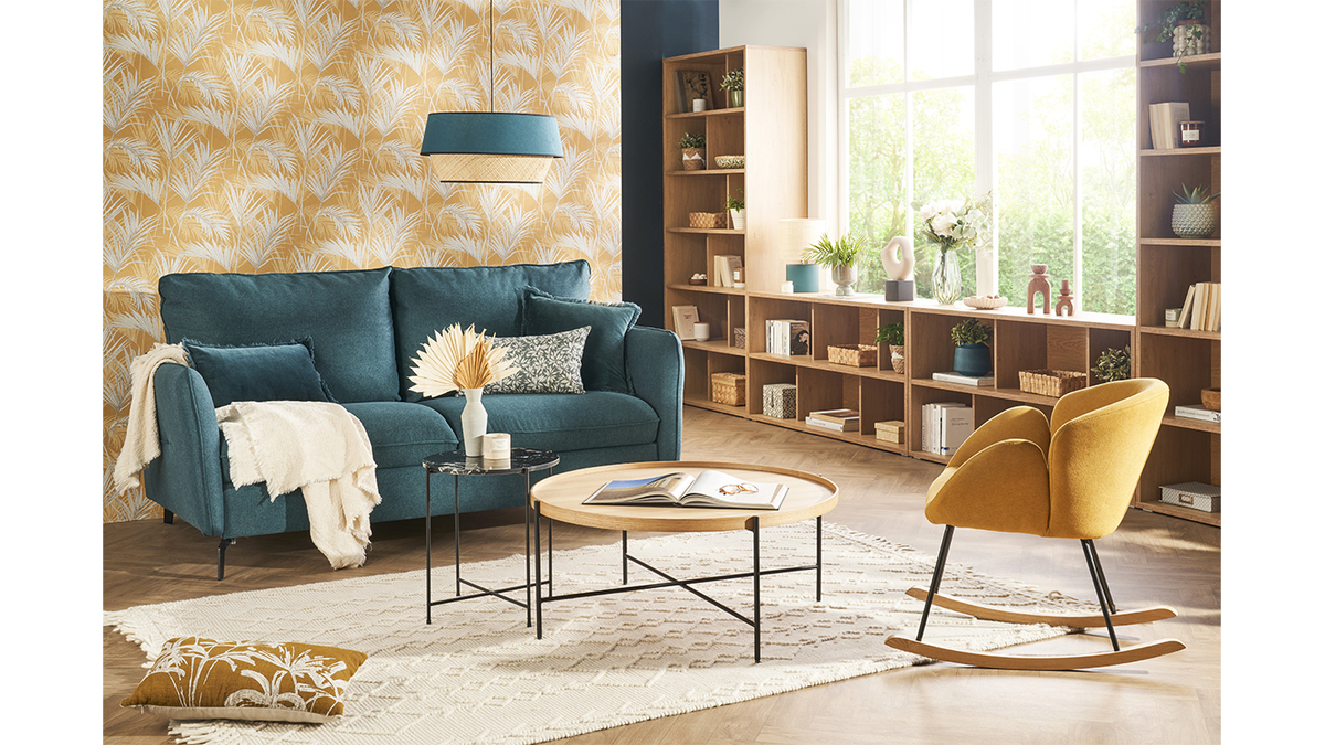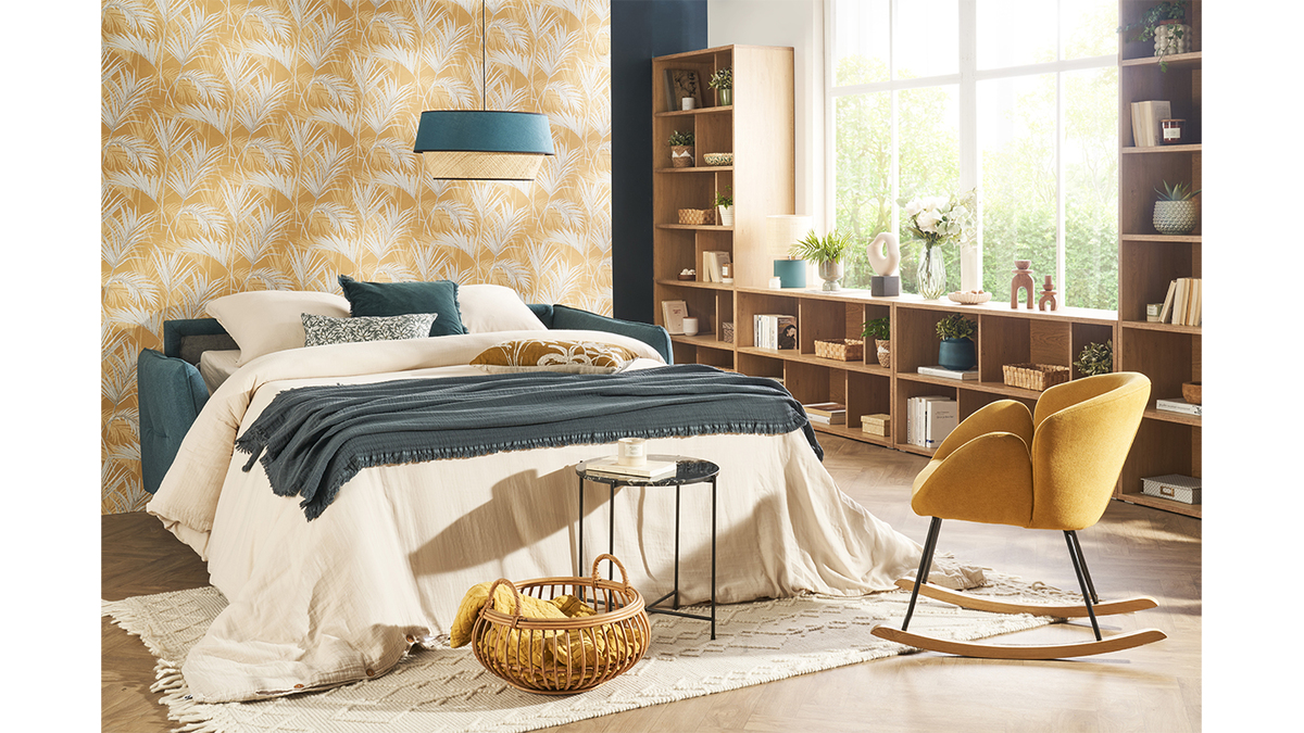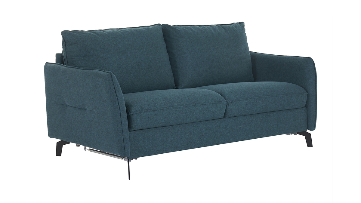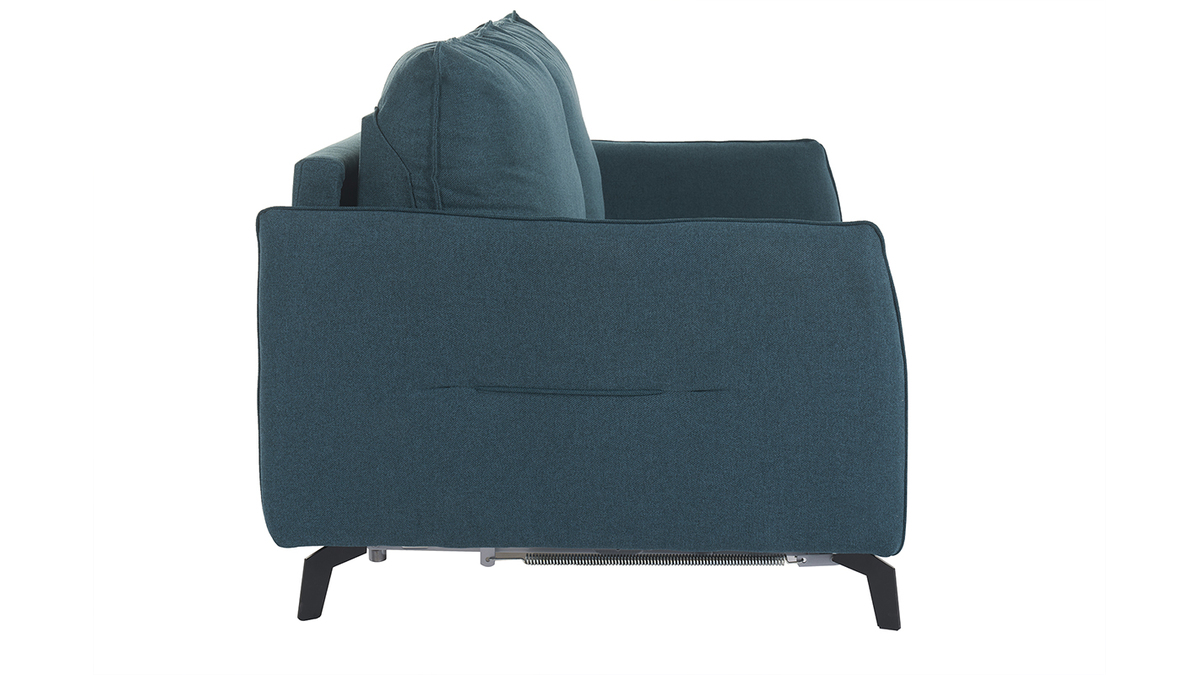 Lignes douces mais affirmées, volumes classiques mais esthétiques, parfait pour se fondre dans de nombreuses ambiances déco, ce canapé convertible bleu canard saura en outre apporter une once de caractère à votre salon.