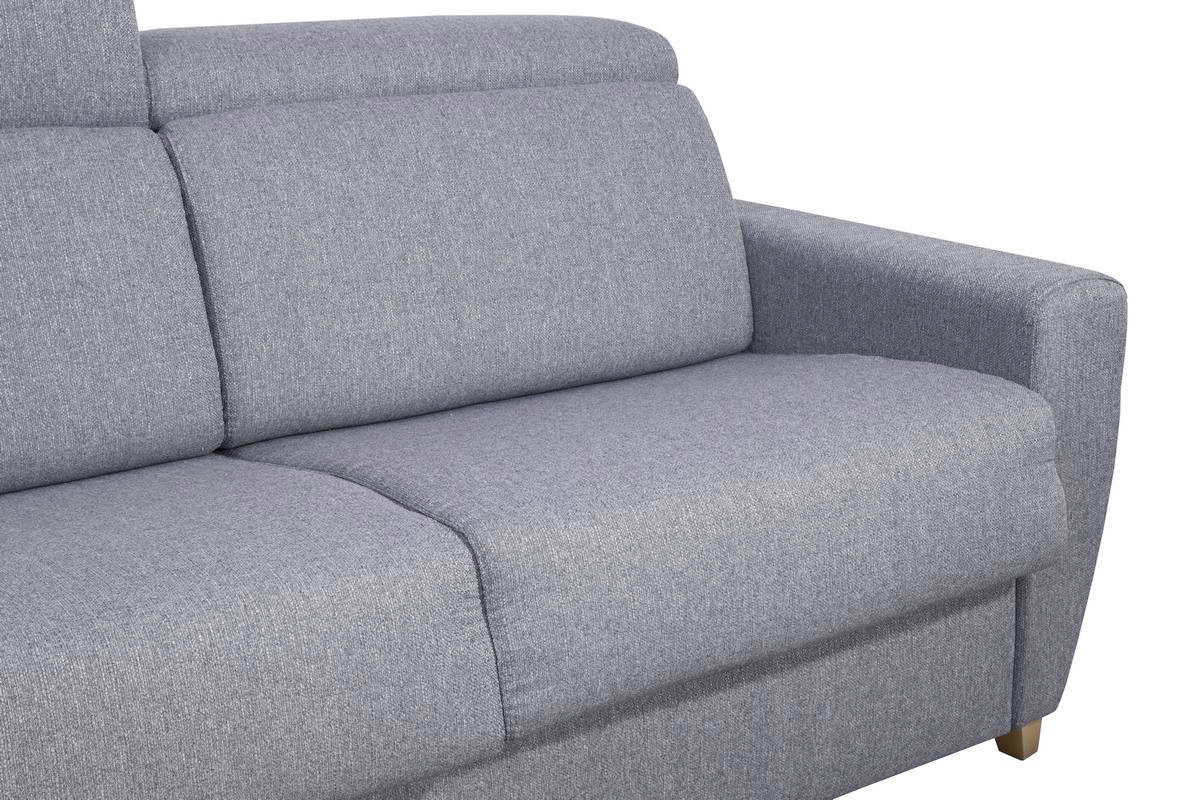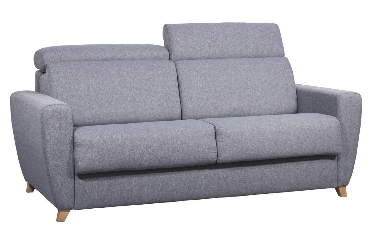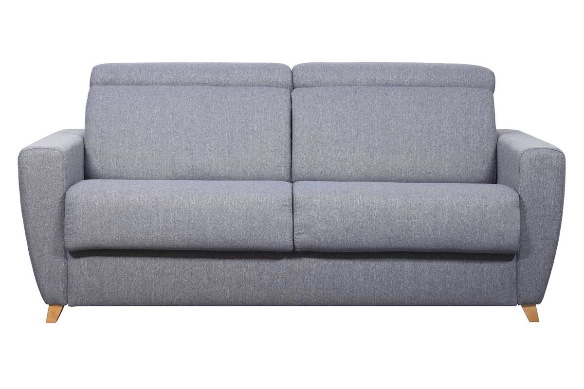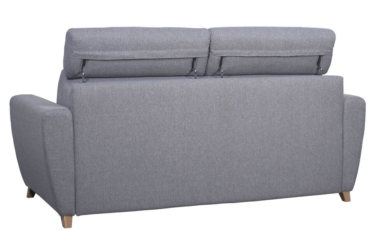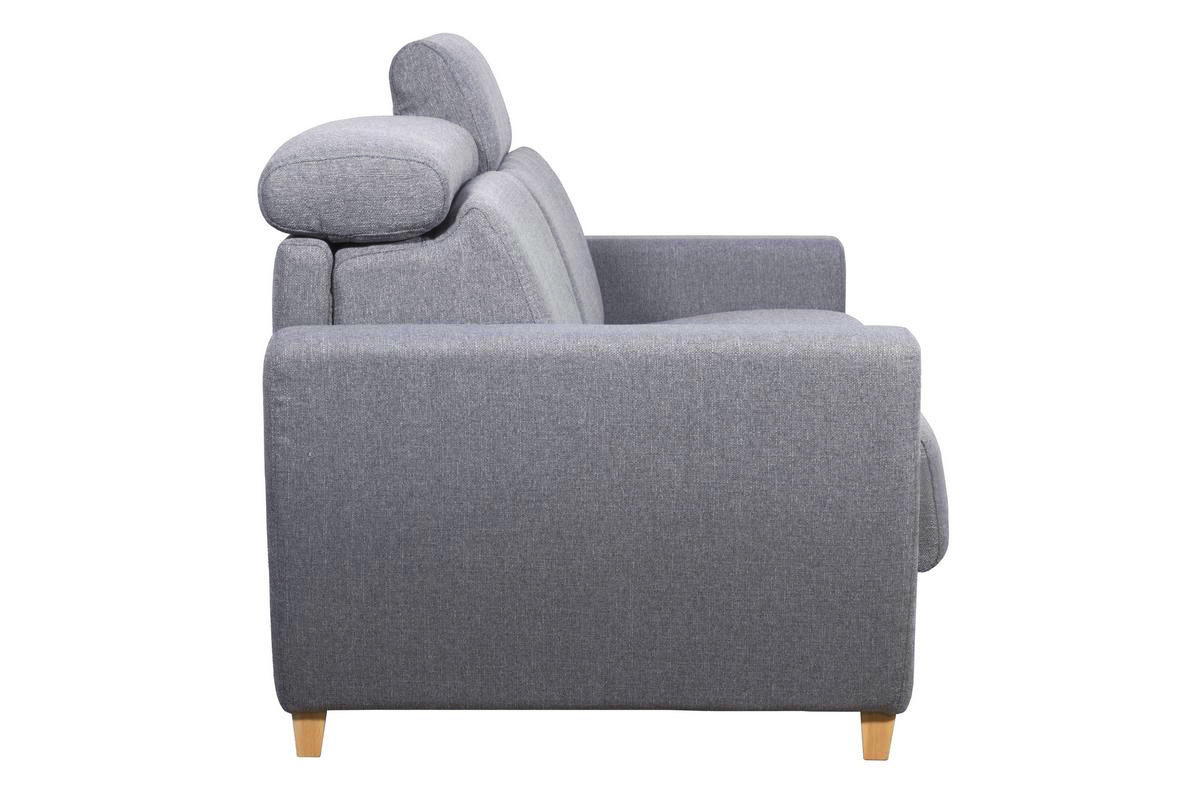 Ce canapé 3 places est revêtu d'un élégant tissu gris (100% polyester) et muni d'un piètement en hêtre massif. On aime particulièrement ses lignes épurées qui lui donnent ce style indémodable et ses têtières ajustables pour le confort. Ses deux espaces de rangement dissimulés dans le dossier vous permettront d'organiser le linge de lit.