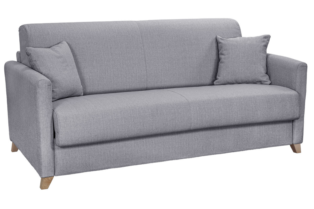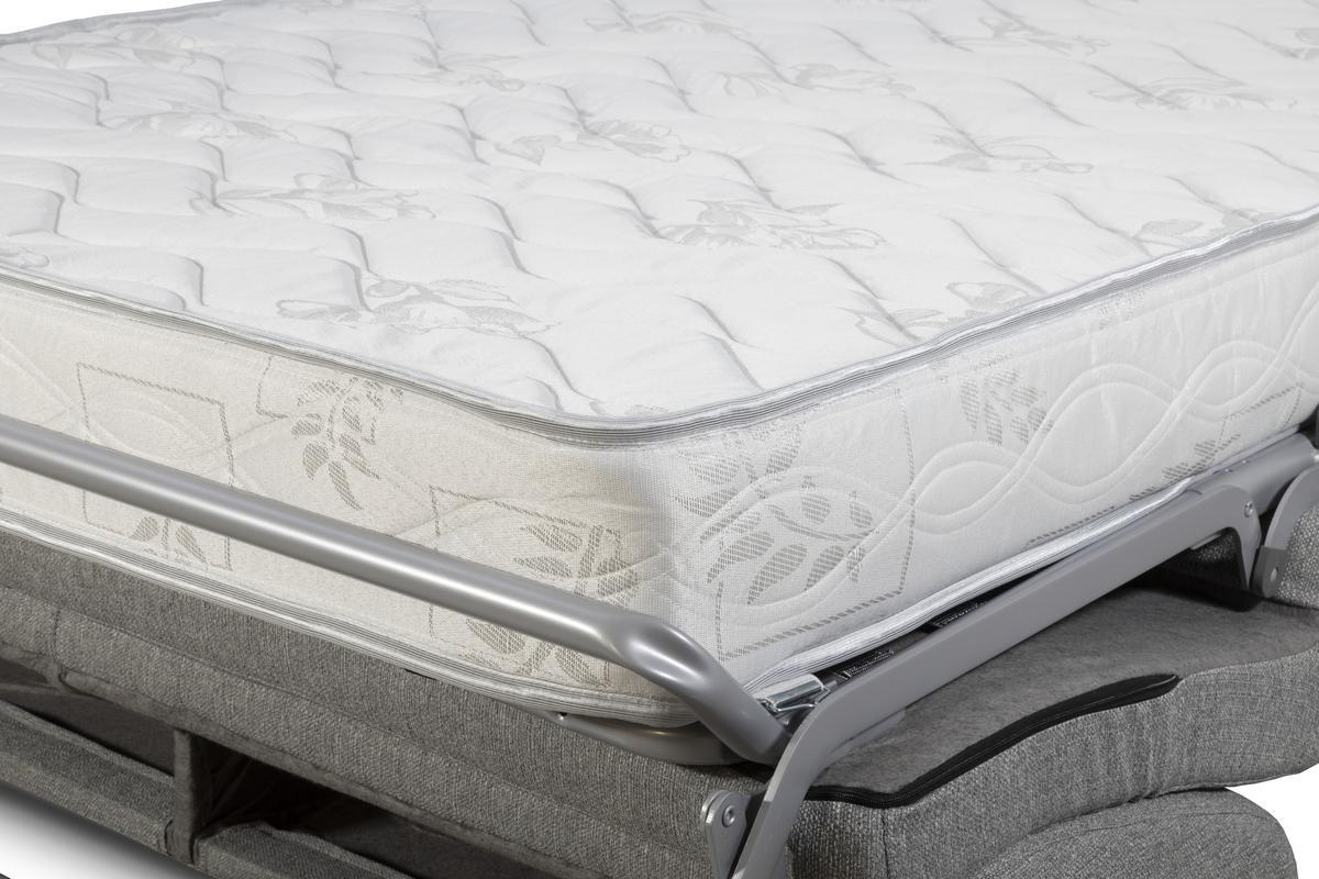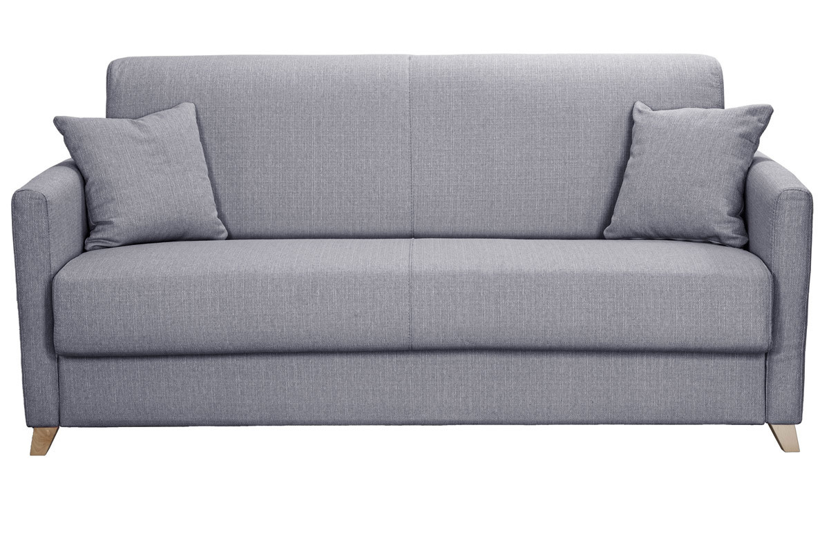 Avec son matelas épais de 18 cm, ce canapé-lit en tissu gris clair offre tout le confort d'un vrai lit 2 places (L140 x L190 x E18 cm). Conçu à partir de mousse polyuréthane (densité 28 kg/m3) et tissu jacquard (100% polyester), le matelas assure un accueil ferme et frais pour une bonne qualité de sommeil.