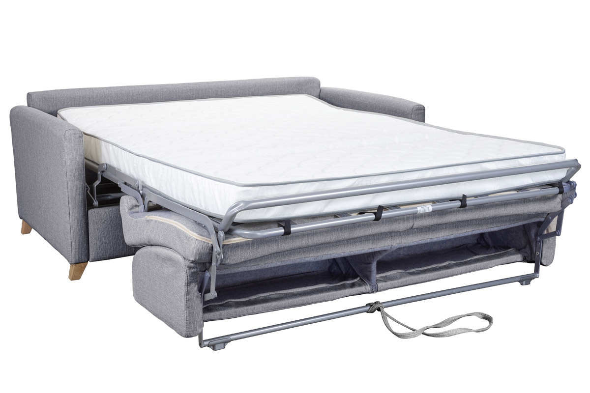Matière : sapin massif, aggloméré de bois, mécanique électro-soudée en acier haute résistance, pieds en hêtre massif