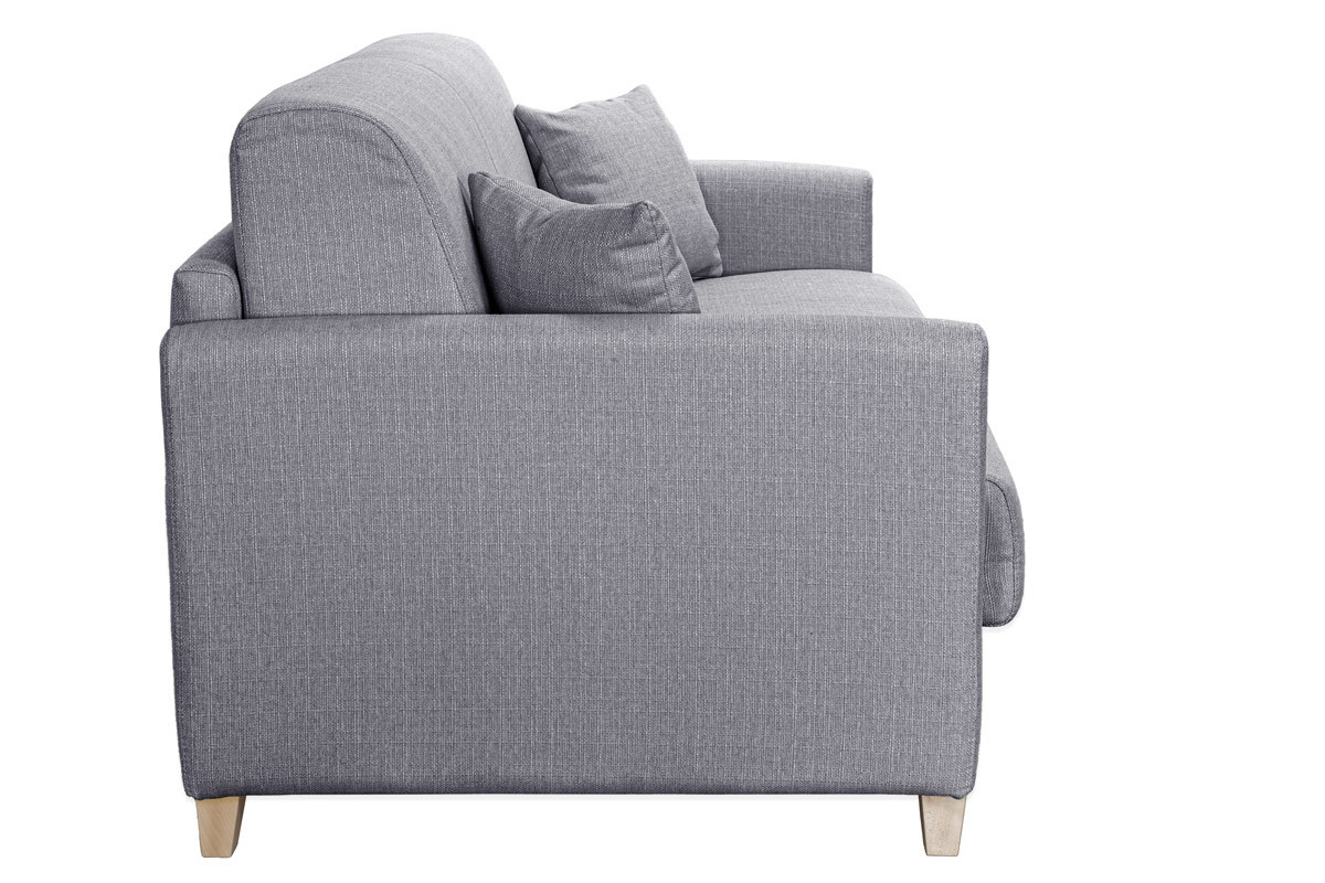 Grâce à ses dimensions compactes (L176 x L99-210 x H68-92 cm), ce petit canapé convertible gris clair est idéal dans les appartements où chaque m² comtpe. Ce canapé gain de place possède deux espaces de rangement intégrés au dossier afin d'offrir tout le confort nécessaire à vos convives.
