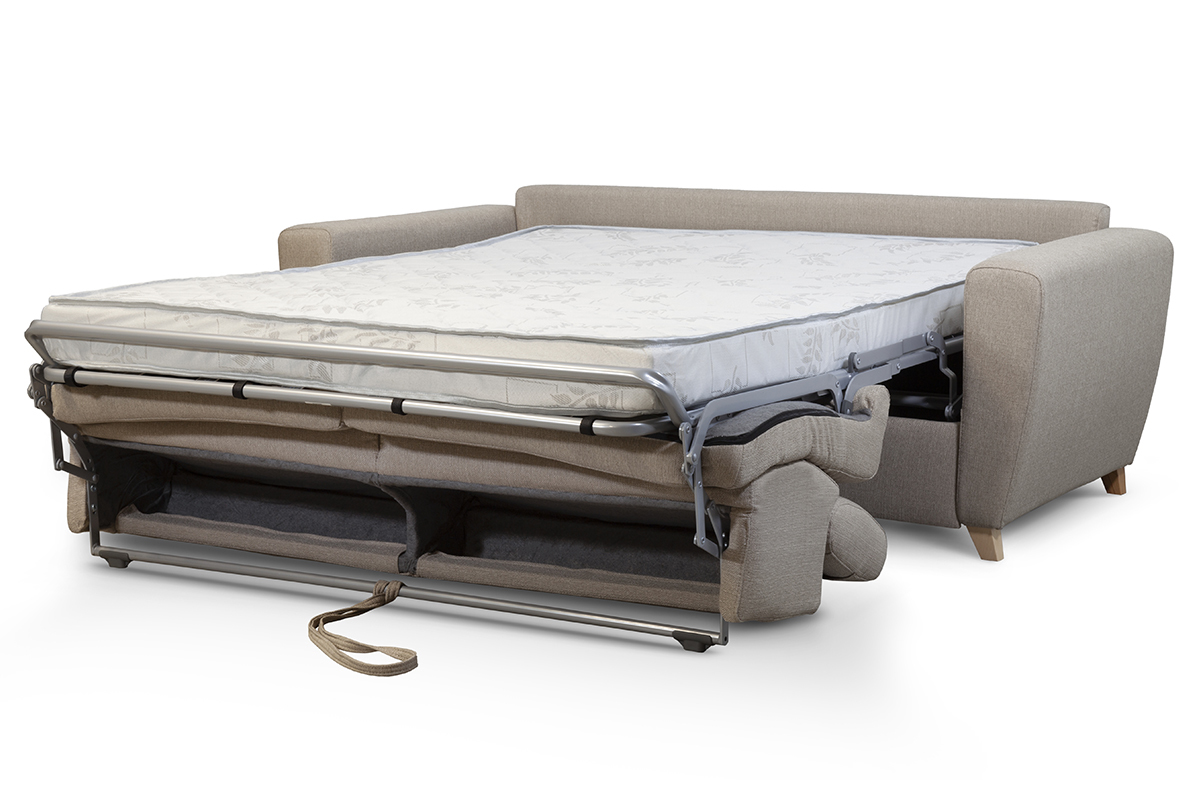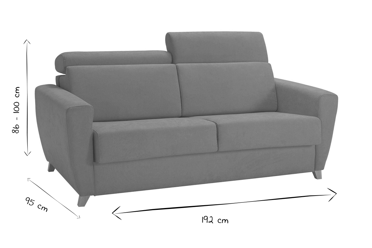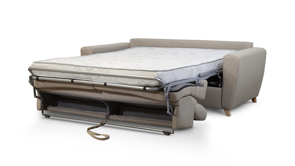 Ce canapé-lit fabriqué en Italie est livré prêt à monter : les pieds sont à monter et les accoudoirs sont à emboîter dans l'assise.