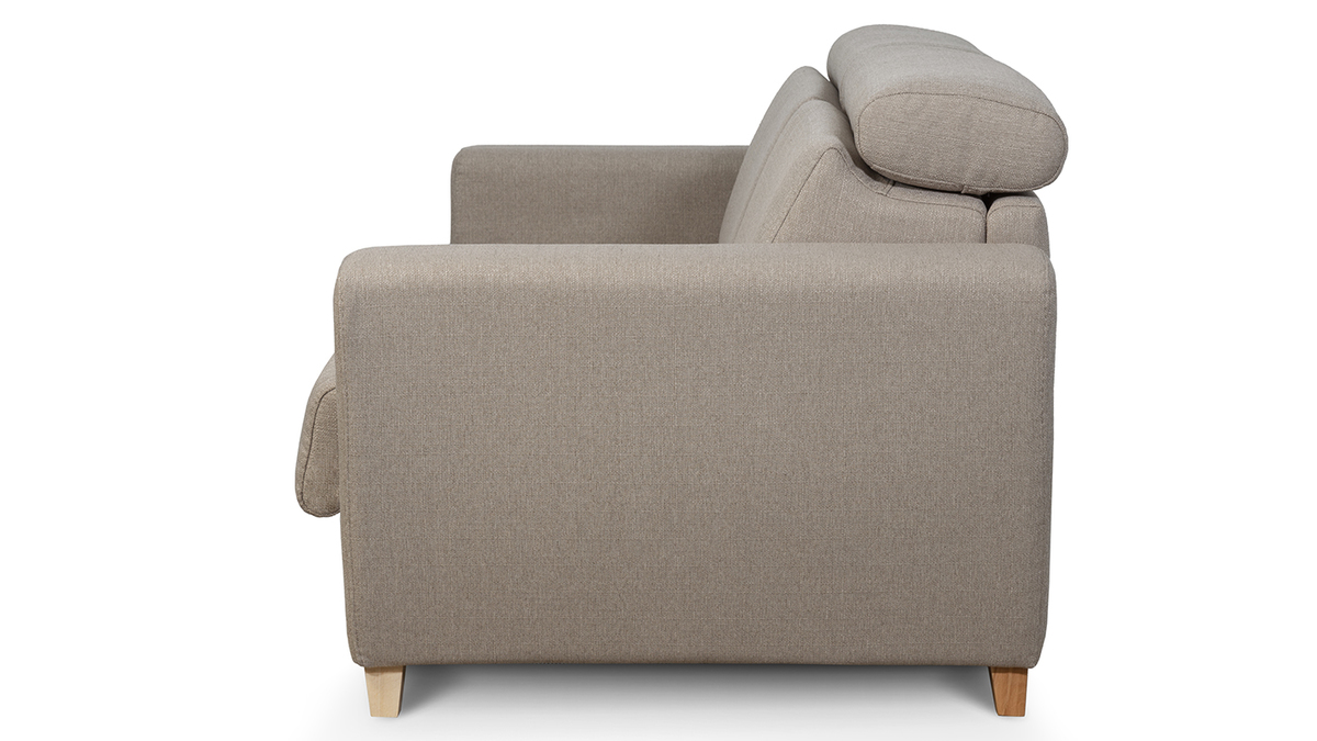 Ce canapé 3 places est revêtu d'un tissu taupe élégant et équipé d'un piètement authentique en hêtre massif. L'association de ces matériaux rappelle ce qui fait le succès des canapés scandinaves tout en apportant un charme certain à cette assise. On aime particulièrement ses têtières ajustables pour le confort et son design épuré qui lui donne ce style indémodable. Le canapé GOYA renferme tout ce qu'on attend d'un canapé confortable : une assise agréable et des têtières réglables pour ajuster le confort de chacun.