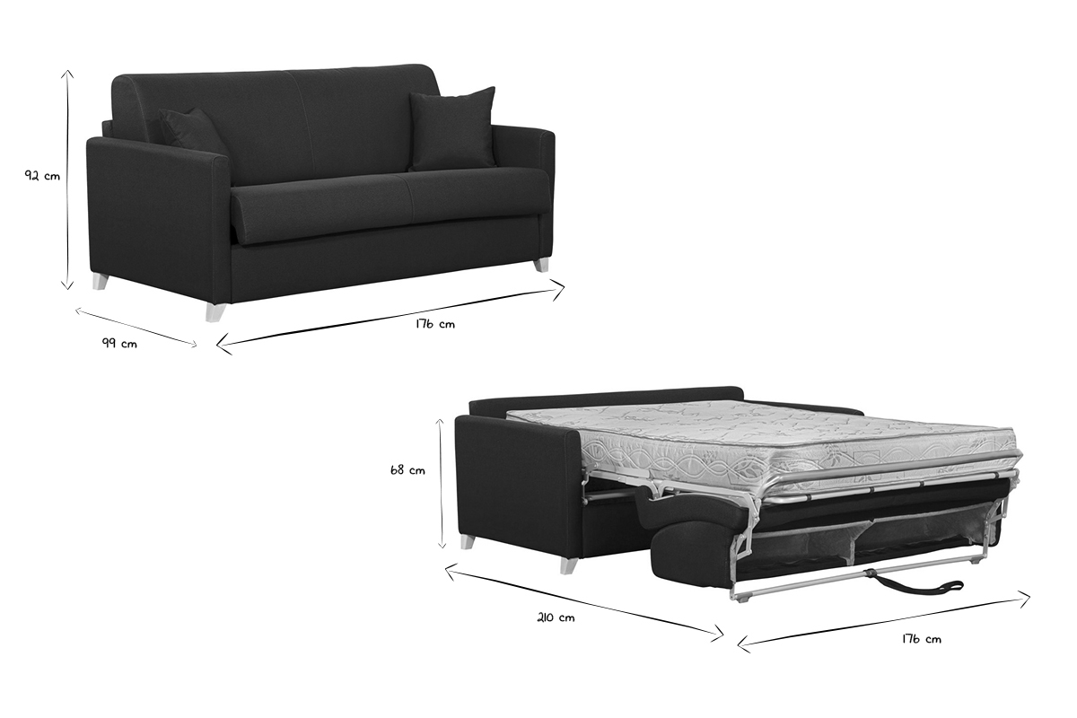 Dimensions totales du canapé ouvert : L176 x P210 x H68 cm