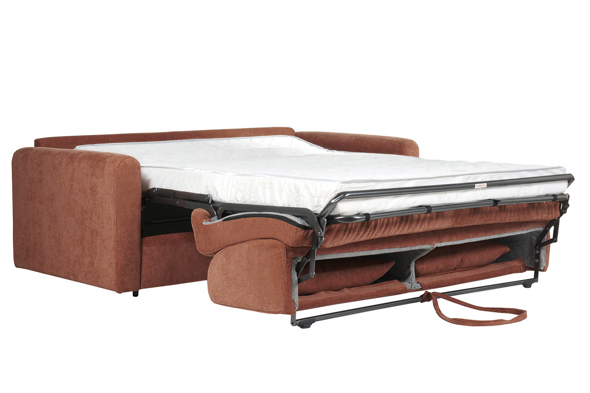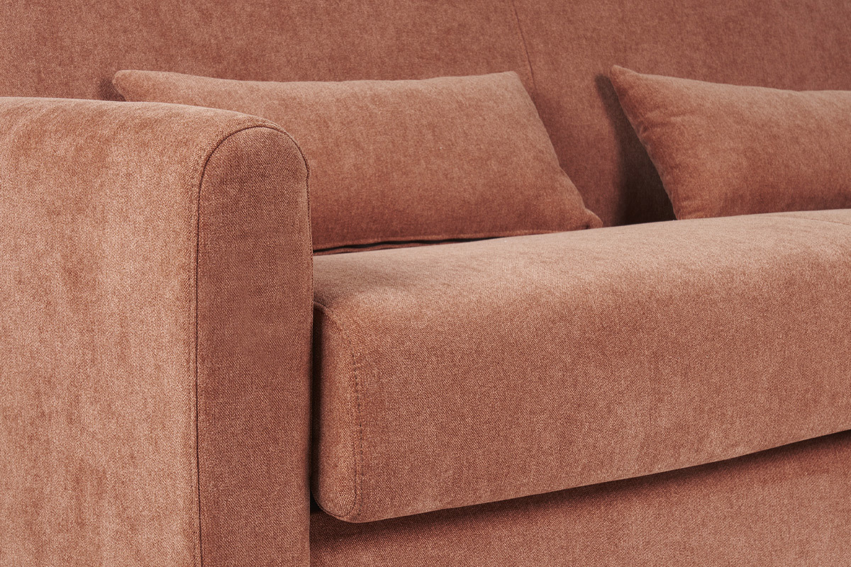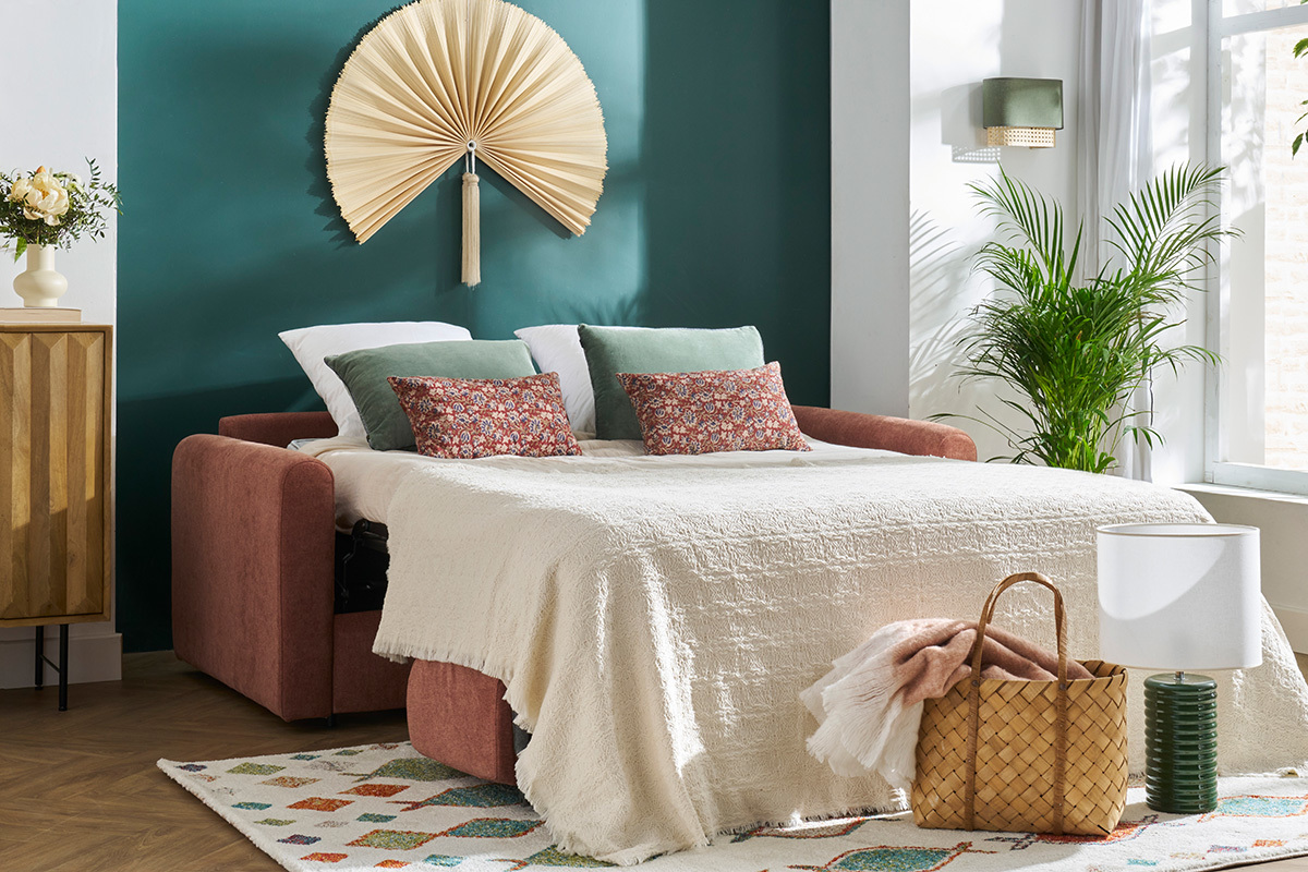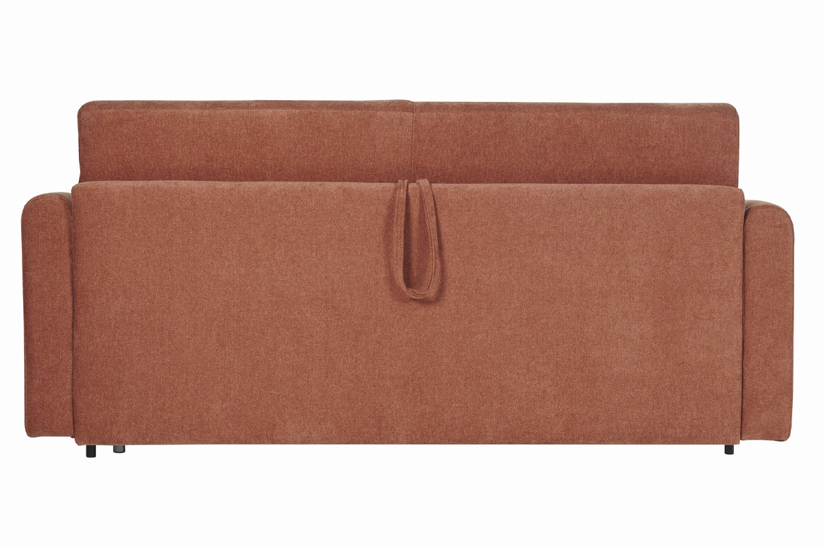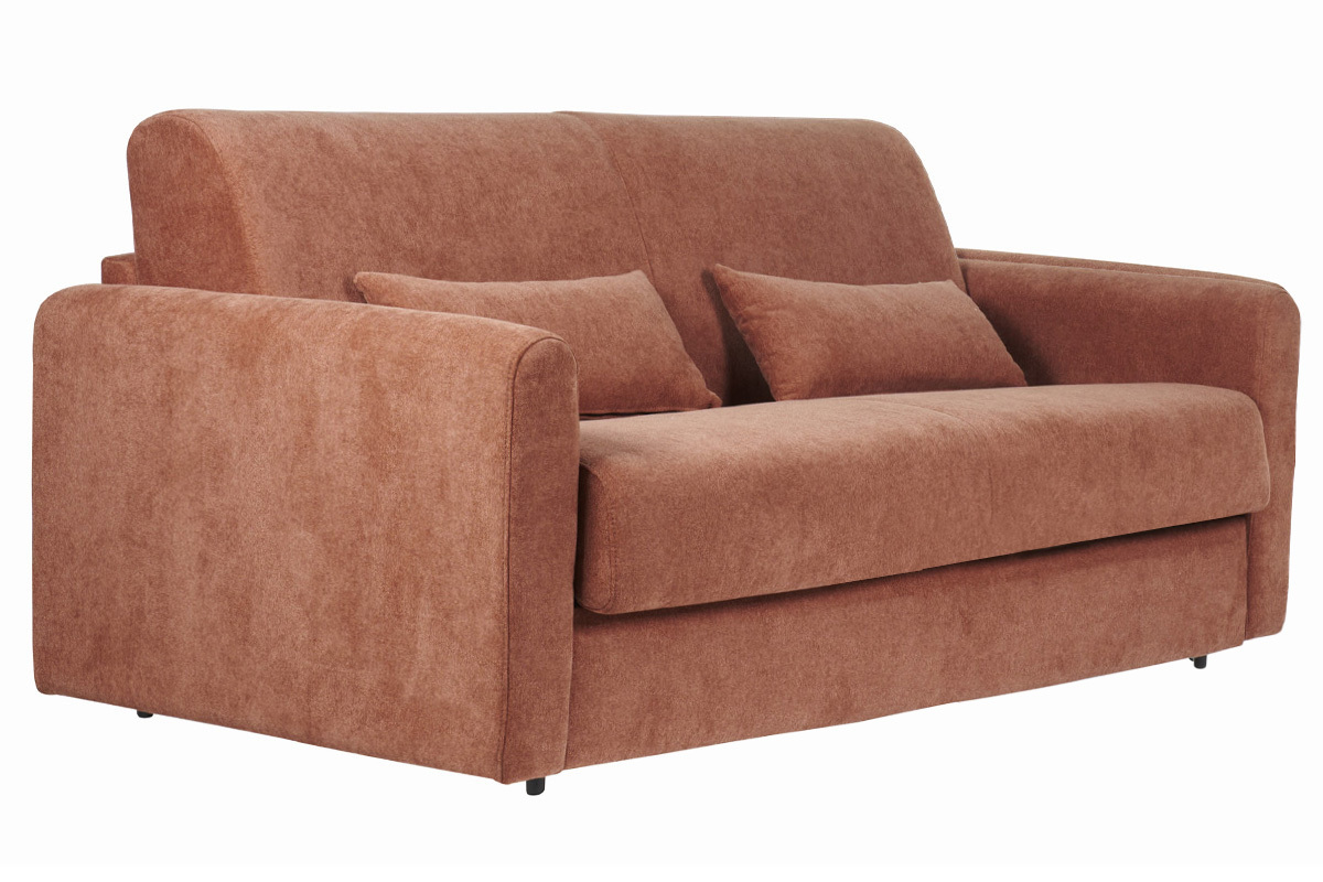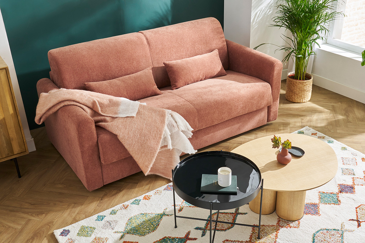 Stylé mais pas que, ce canapé 3 places a le mérite d'être également un couchage d'appoint ultra pratique ! Grâce à son système d'ouverture express, ce canapé-lit en tissu effet velours terre brûlée révèle en un rien de temps un large matelas confortable d'une épaisseur de 13 cm. Par ses dimensions (140x190 cm), il pourra accueillir aisément 2 personnes.
