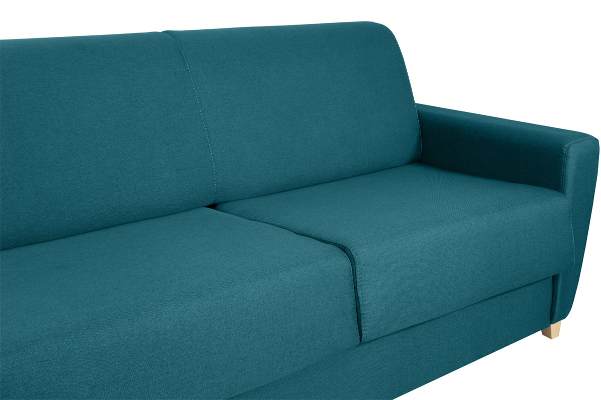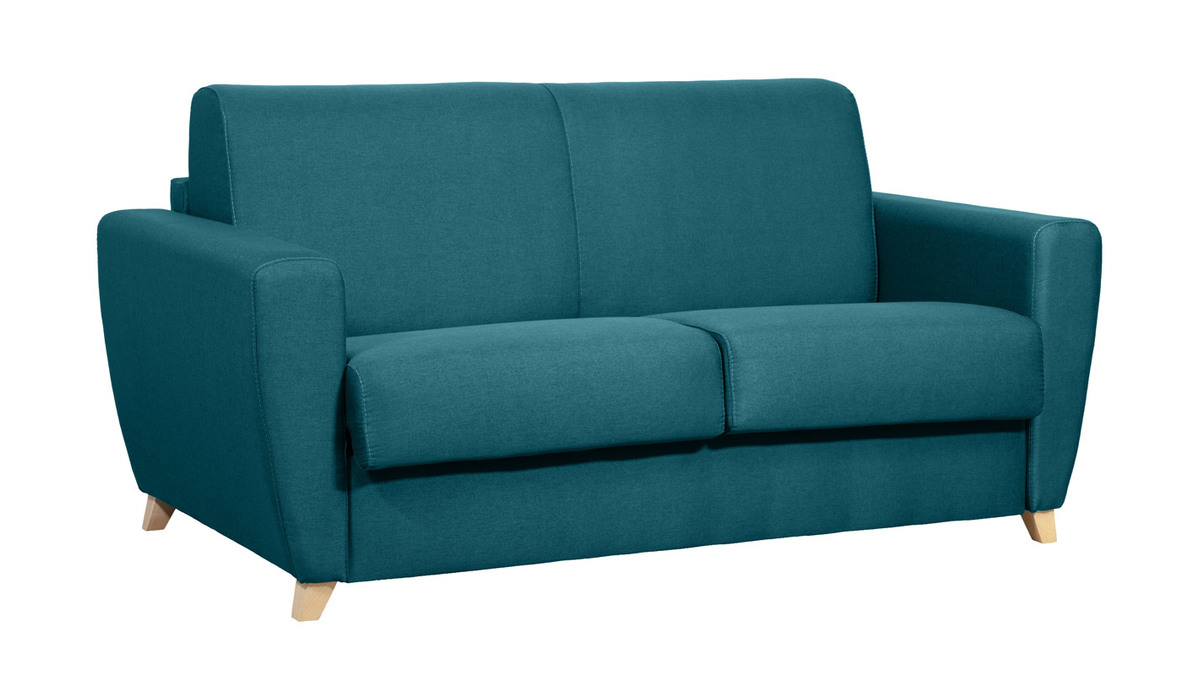 Un revêtement en tissu bleu canard, des pieds en hêtre massif , des lignes arrondies : GRAHAM affiche un sublime look cosy qui a tout pour plaire.