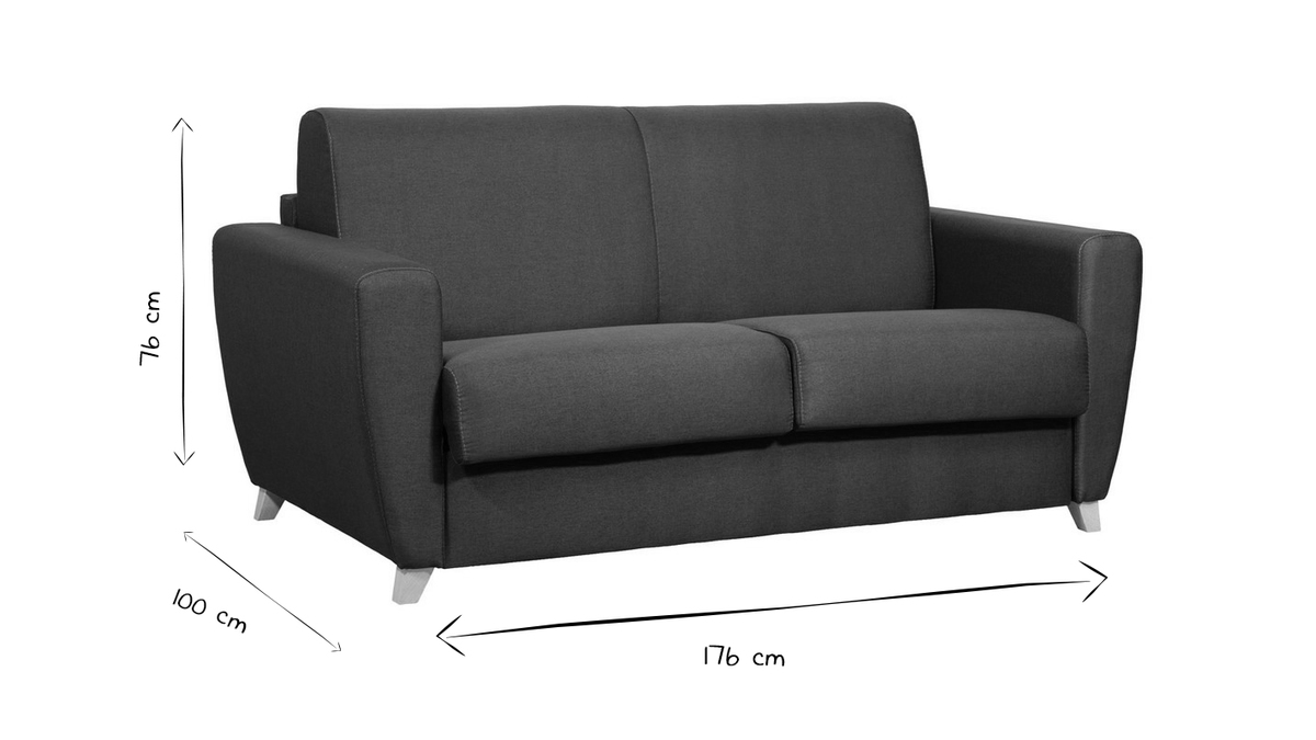 Le soir venu, GRAHAM se transforme en un couchage d'appoint confortable. En tirant simplement sur le dossier, il dévoile un sommier équipé d'un matelas d'appoint (L120 x L190 x E12 cm).