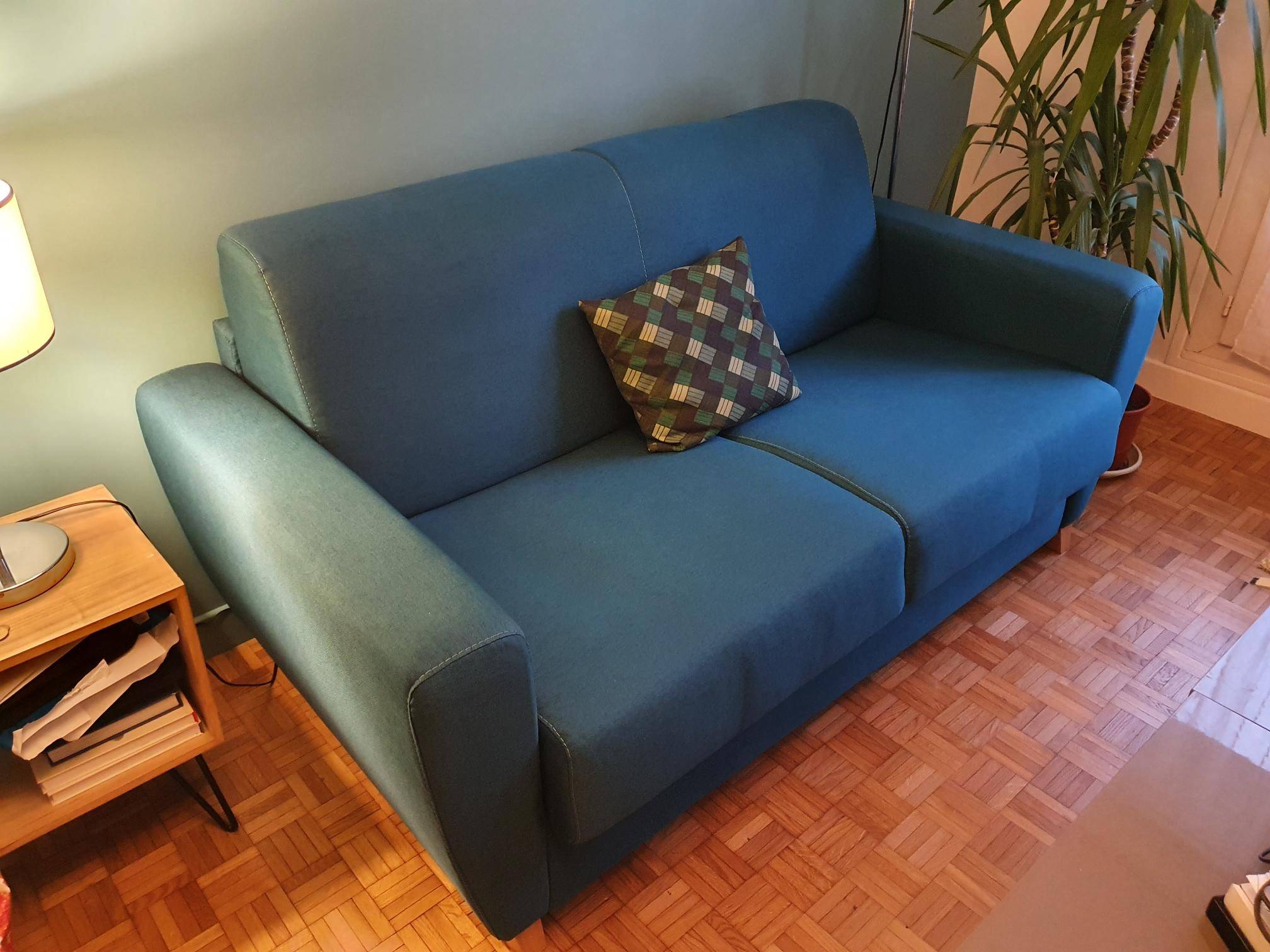 C'est un canapé-lit hyper fonctionnel qui permet de recevoir vos convives sans faire de compromis côté déco. Parfait pour optimiser les petits espaces avec style.