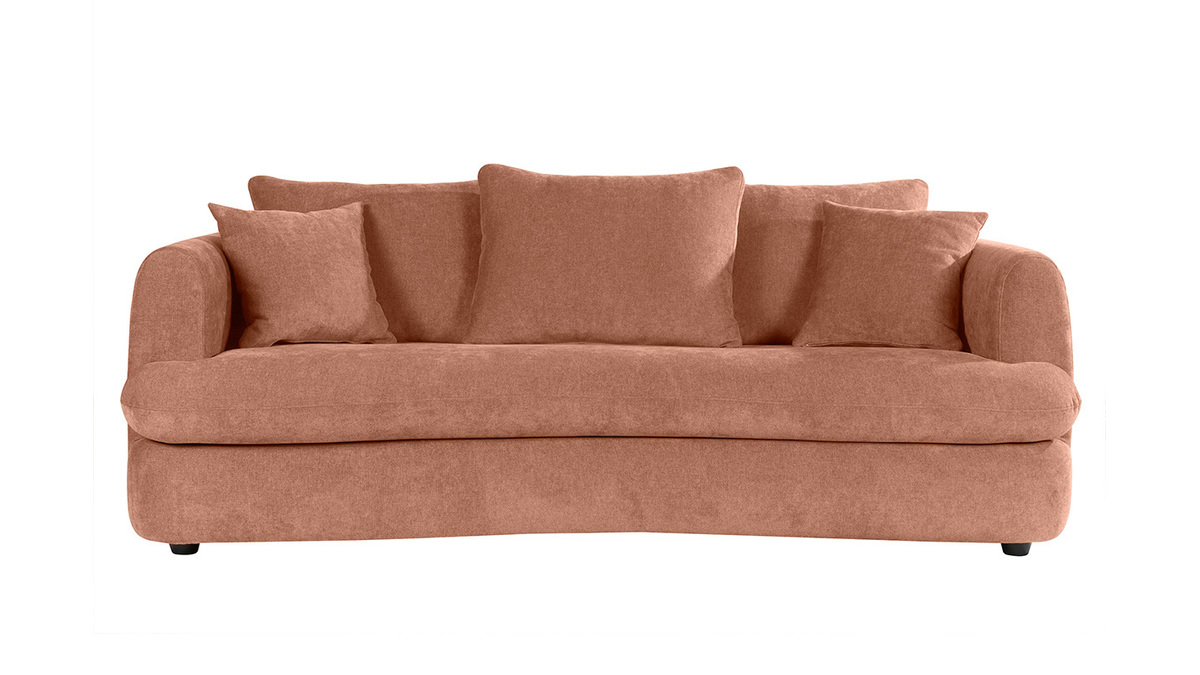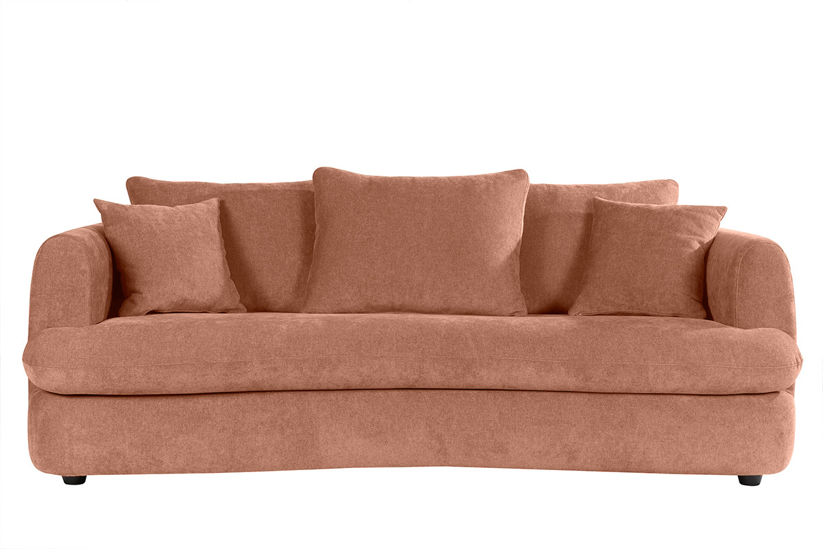 Véritable éloge à la douceur, ce grand canapé 3-4 places terre brûlée s'habille d'un tissu effet velours. À la fois résistante et délicate au toucher, cette trame écrue sublime les volumes et appose une note d'élégance intemporelle à l'ensemble. Caractérisé par une large assise ferme (densité 28 kg/m³), galbé par 3 coussins de dossier (L68 x L50 x E22 cm) et 2 coussins d'appoint (L45 x L45 x E16 cm), ce canapé-lit terre brûlée invite naturellement à se lover sans retenue !