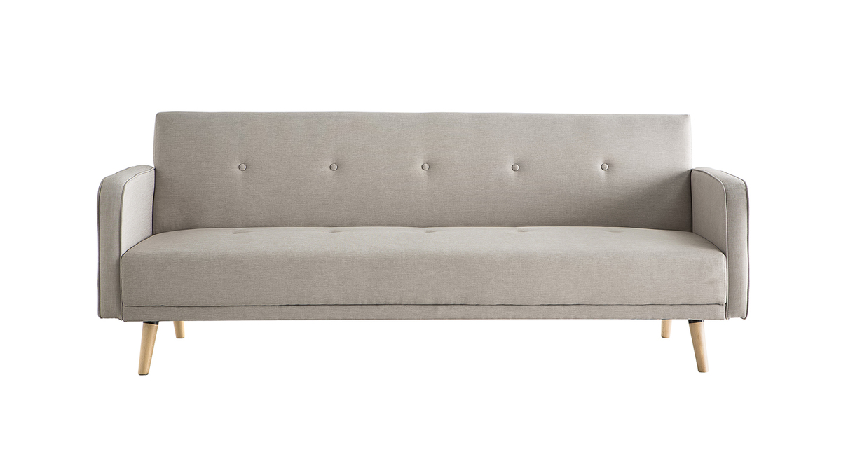 Avec son revêtement en tissu (100% polyester), sa belle couleur gris beige, son piétement en bois clair et sa forme épurée, ce canapé convertible 3 places forme une belle assise au design indémodable.