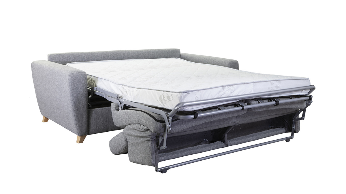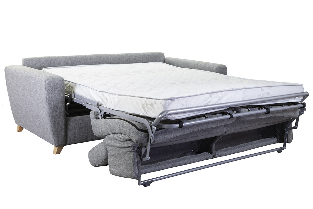 Ce canapé-lit fabriqué en Italie est livré prêt à monter : les accoudoirs sont à emboîter dans l'assise.