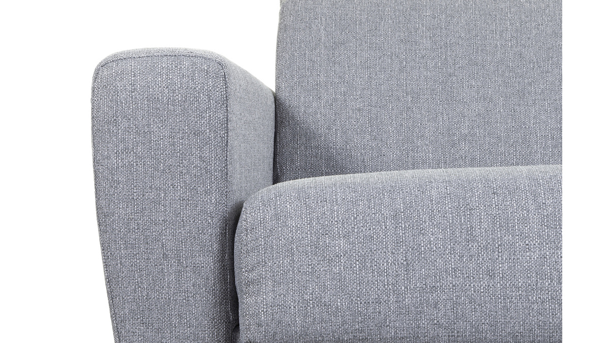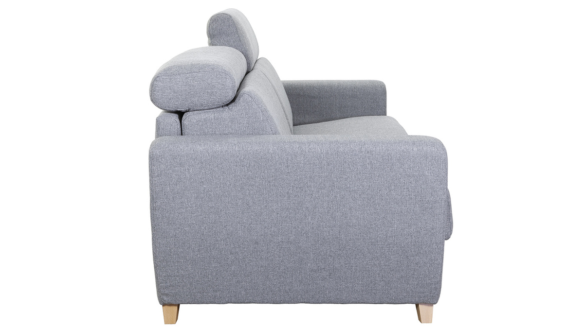 Ce canapé 3 places est revêtu d'un tissu gris élégant et équipé d'un piètement authentique en hêtre massif. L'association de ces matériaux rappelle ce qui fait le succès des canapés scandinaves tout en apportant un charme certain à cette assise. On aime particulièrement son design épuré qui lui donne ce style indémodable et ses têtières ajustables pour le confort. Le canapé GOYA renferme tout ce qu'on attend d'un canapé confortable : une assise agréable et des têtières réglables pour ajuster le confort de chacun.