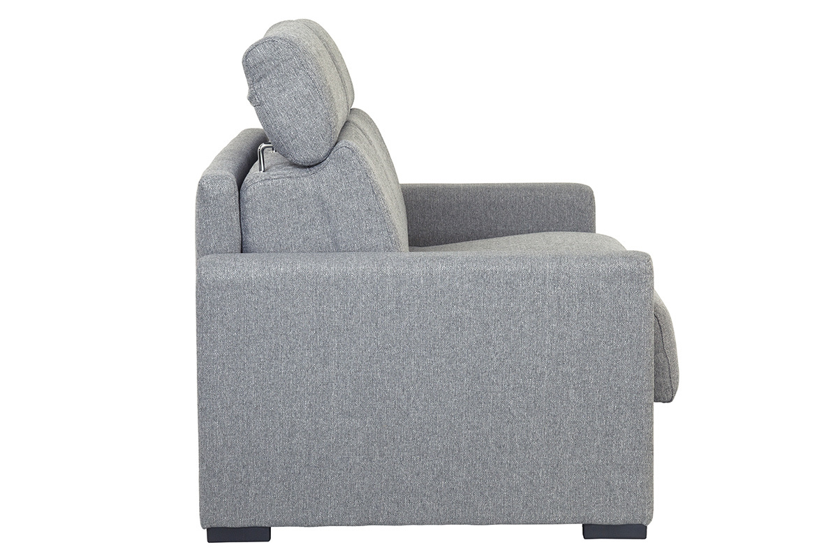 La nuit, ce canapé se transforme en lit. Grâce à son système express, pas besoin d'enlever de coussin : il suffit d'abaisser le dossier pour installer rapidement un coin nuit d'appoint équipé d'un couchage 140 x 190 cm. Avec son matelas de 18 cm d'épaisseur digne d'un vrai matelas 2 places et ses rangements intégrés dans le dossier, ce canapé-lit est l'indispensable des petits espaces et des nuits confortables.
