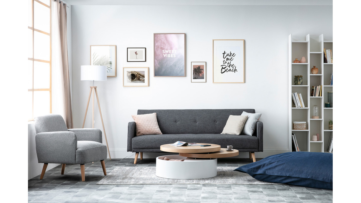 Si la déco nordique répond à des critères de simplicité et de fonctionnalité, alors cette accueillante banquette lit gris foncé - à la fois esthétique et pratique - mérite à juste titre sa place dans la catégorie des tant plébiscités canapés scandinaves !
