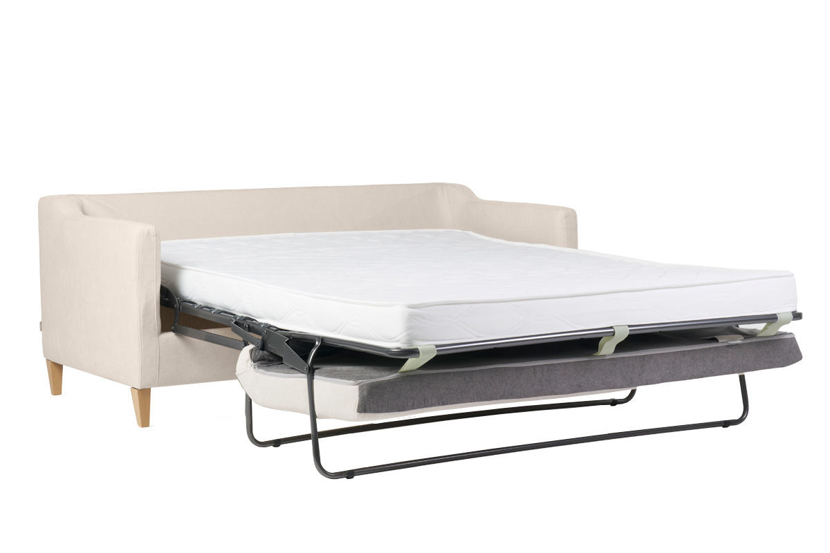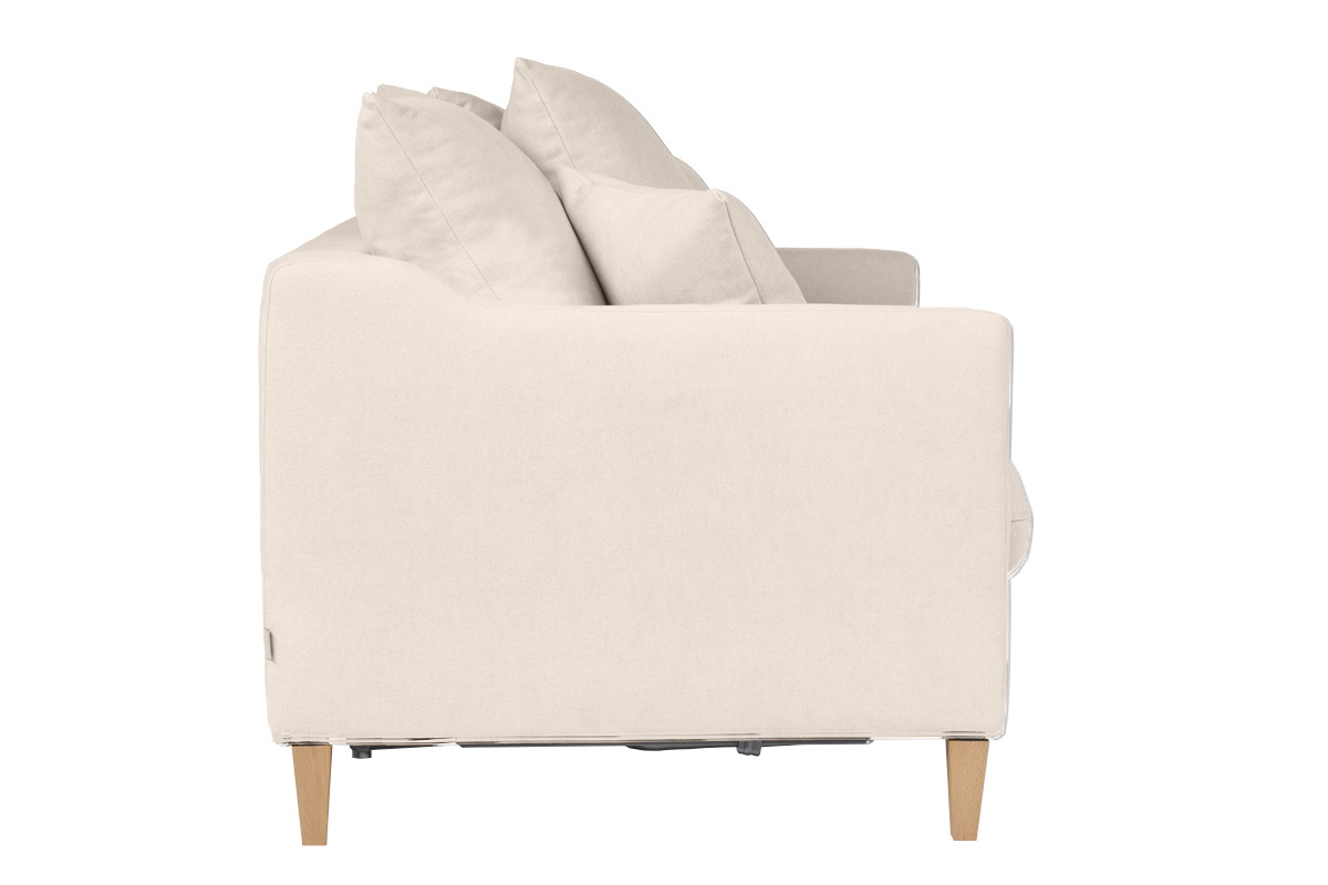 Nordique... Et ultra pratique ! Ce canapé convertible au doux style cosy sera l'allié invétéré des petits intérieurs cocooning. En plus d'être un canapé scandinave intemporel au beau tissu beige et aux solides pieds fuselés en hêtre massif, LOUISE est un canapé convertible très confortable.