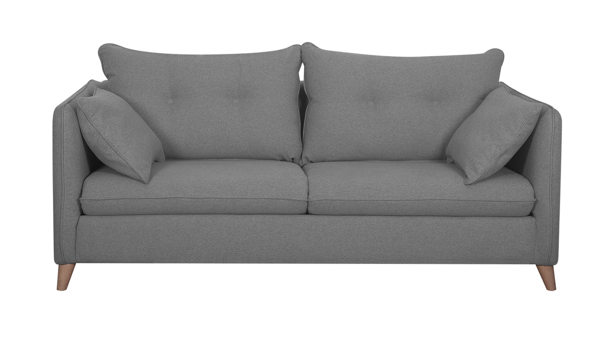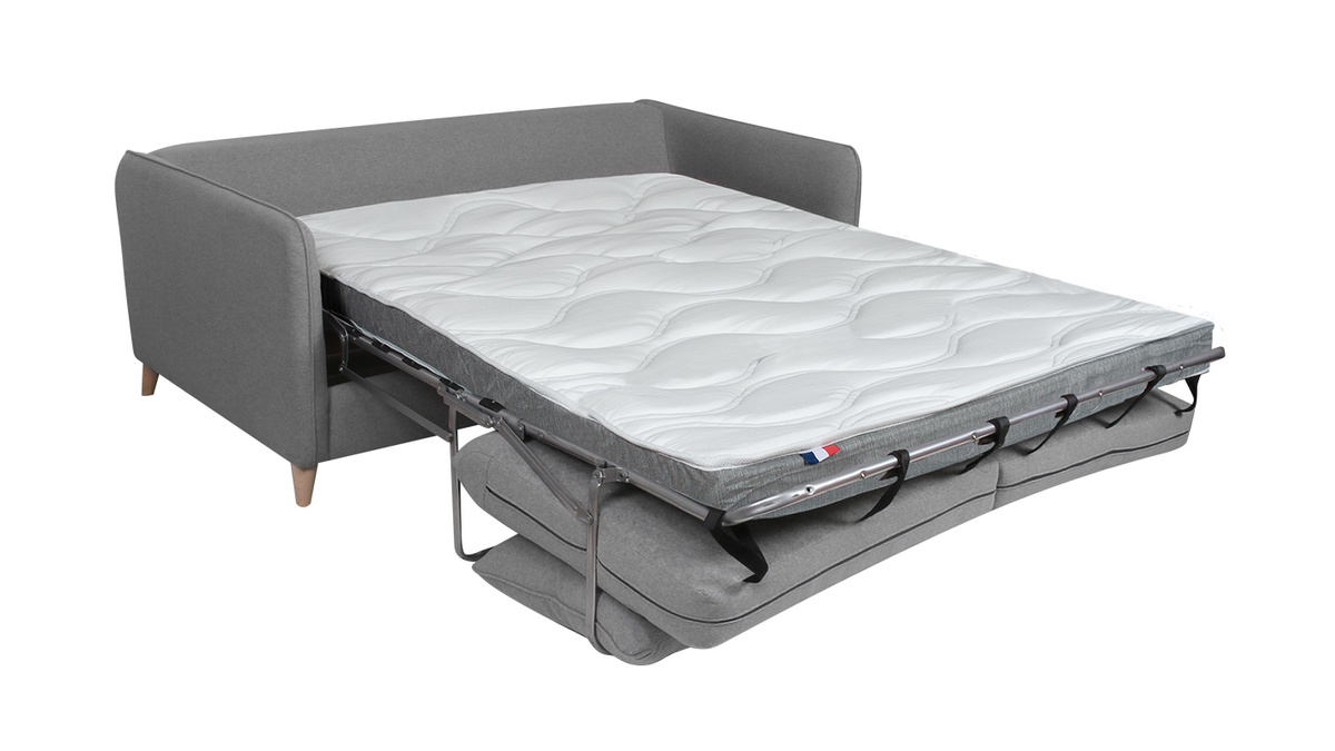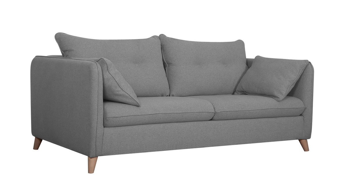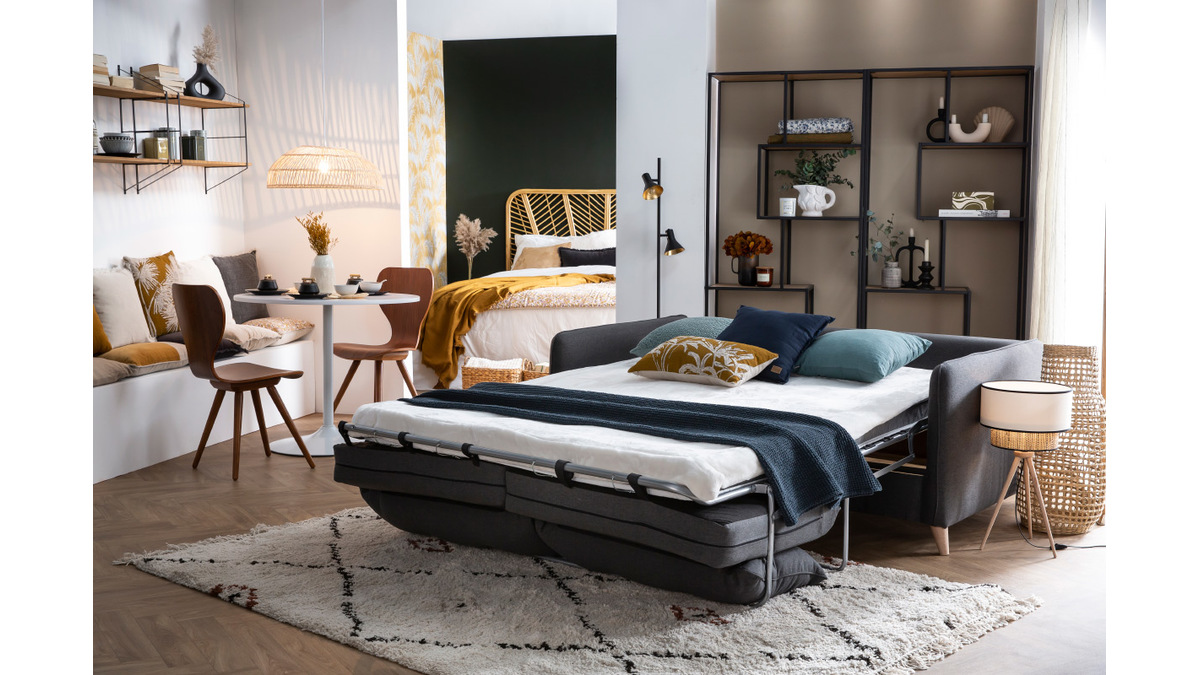 Un design épuré, des coussins confortables, un piètement en bois authentique... ce canapé-lit réunit l'essentiel pour un salon cosy et indémodable. Son revêtement en tissu est idéal pour un espace détente chaleureux. Sa teinte grise permet de l'installer facilement dans différents styles de salon. On l'accompagne d'un fauteuil coloré pour un séjour moderne et convivial ou d'un rocking chair naturel pour un espace cocooning.