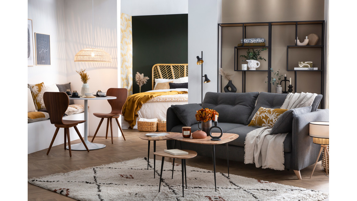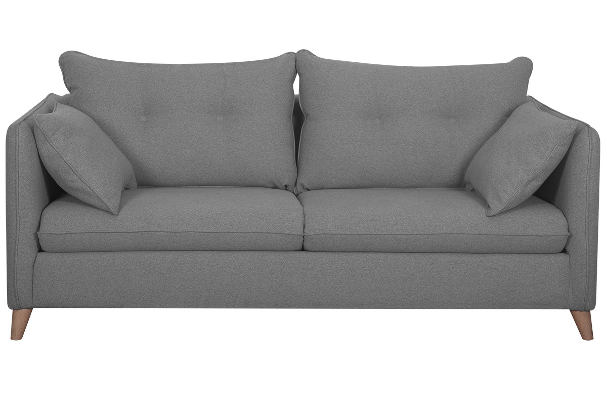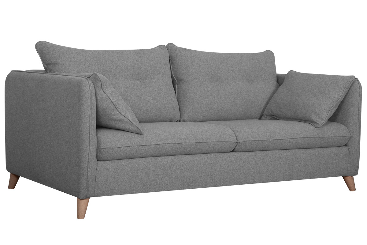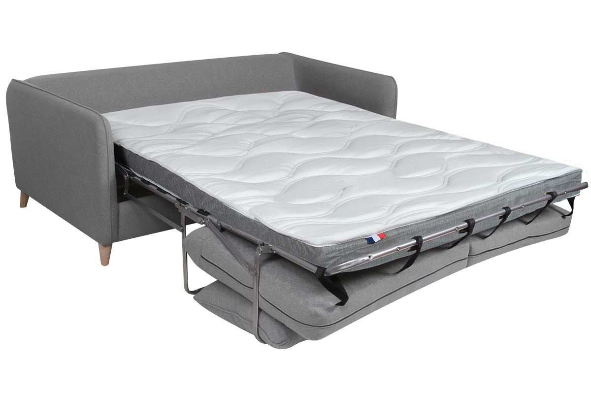 Un design épuré, des coussins confortables, un piètement en bois authentique... ce canapé-lit réunit l'essentiel pour un salon cosy et indémodable. Son revêtement en tissu est idéal pour un espace détente chaleureux. Sa teinte grise permet de l'installer facilement dans différents styles de salon. On l'accompagne d'un fauteuil coloré pour un séjour moderne et convivial ou d'un rocking chair naturel pour un espace cocooning.