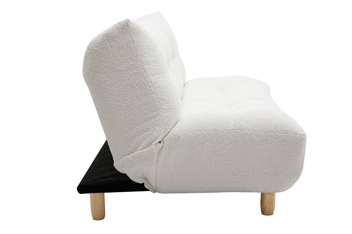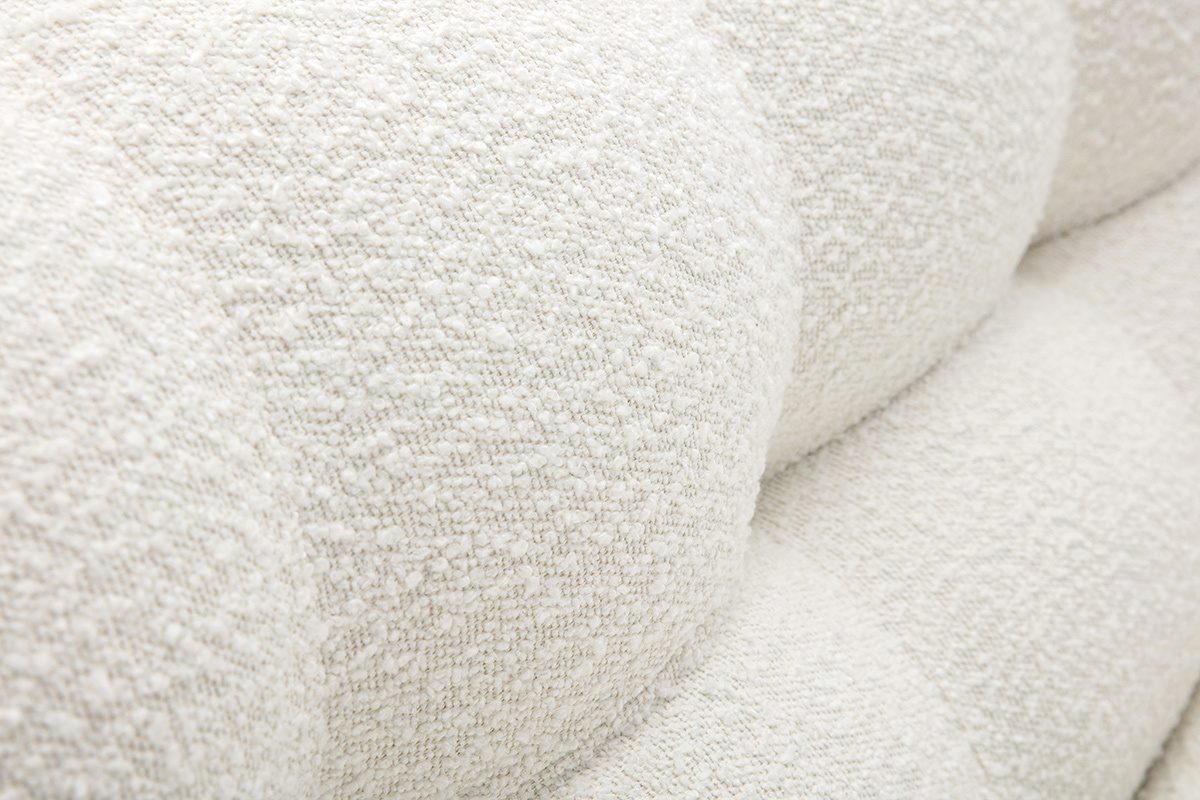 Son assise généreuse et son épais dossier sont une invitation à la détente. Avec son revêtement en tissu effet laine bouclée blanc, il réchauffera la décoration du salon tout en apportant douceur et authenticité à la pièce. Son coloris se marie parfaitement avec ses quatre pieds en chêne qui donnent une touche authentique à l'ensemble. Le minimalisme de sa forme ainsi que les différents matériaux utilisés font du canapé YUMI un canapé scandinave indémodable.