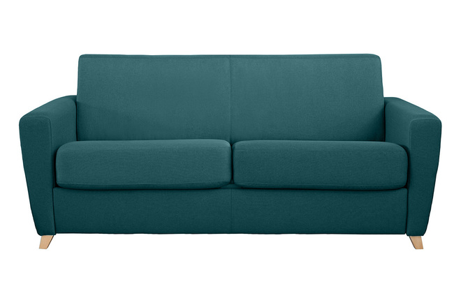 Grâce à son design soigné, ce canapé-lit est idéal pour s'aménager un coin nuit optimal sans faire une croix sur sa déco. Son assise renferme un sommier équipé d'un matelas 140 x 190 cm afin de pouvoir dormir à deux confortablement. Combinaison parfaite entre un canapé design et un véritable lit, le canapé convertible GRAHAM conviendra parfaitement pour faire dormir ses convives. Ses deux espaces de rangement dissimulés dans le dossier en font l'allier des petits appartements.