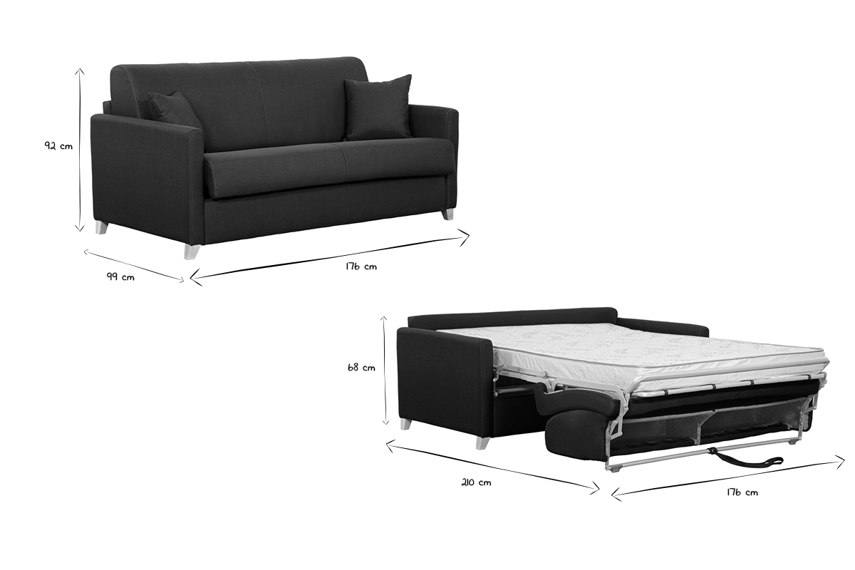 Dimensions totales du canapé ouvert : L176 x P210 x H68 cm