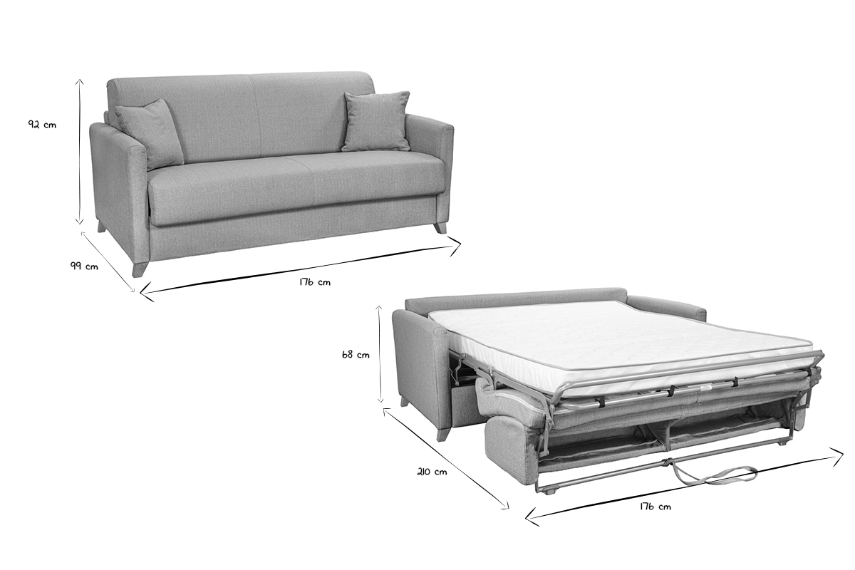 Dimensions totales du canapé ouvert : L176 x P210 x H68 cm