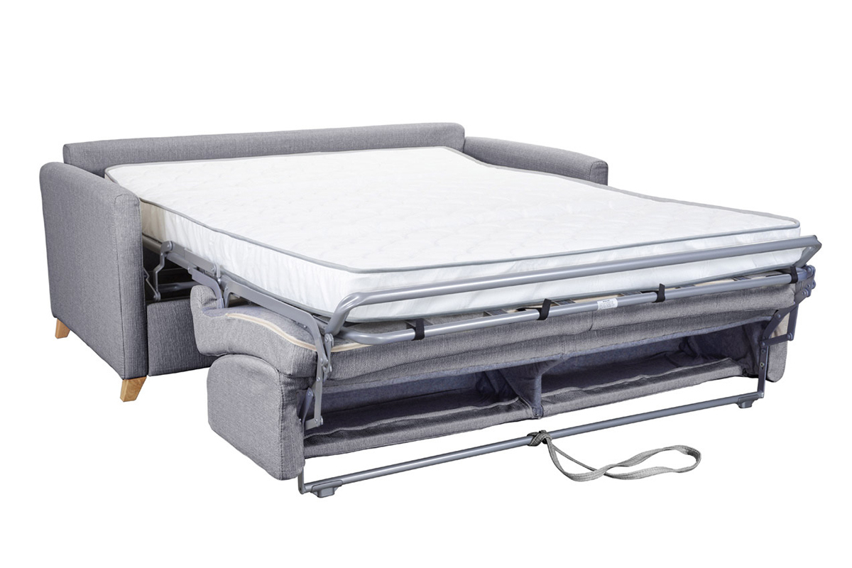 Matière : sapin massif, aggloméré de bois, mécanique électro-soudée en acier haute résistance, pieds en hêtre massif