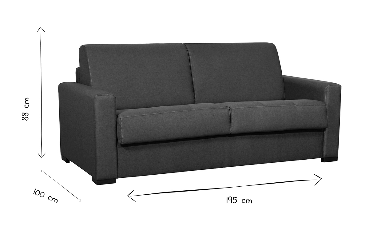 En tirant sur le dossier, découvrez un espace nuit équipé d'un matelas 140 x 190 cm. Le canapé lit GRAHAM est un convertible conçu pour offrir un excellent couchage d'appoint pour deux personnes. Il est équipé d'un matelas de 18 cm d'épaisseur pour des nuits confortables. Les deux petites niches de rangement dissimulées dans le dossier complètent un ensemble ultra fonctionnel parfaitement adapté aux petits espaces.