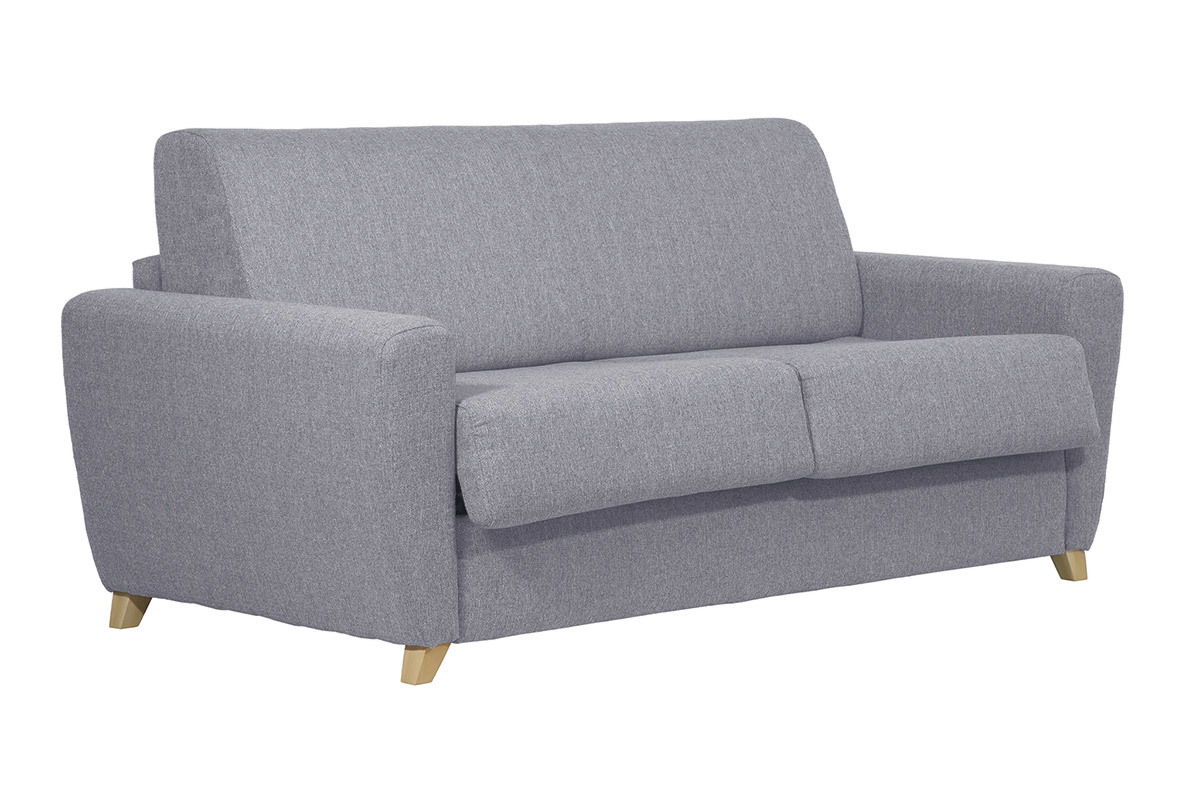 En tirant sur le dossier, découvrez un espace nuit équipé d'un matelas 140 x 190 cm. Le canapé lit GRAHAM est un convertible conçu pour offrir un excellent couchage d'appoint pour deux personnes. Il est équipé d'un matelas de 18 cm d'épaisseur pour des nuits confortables. Les deux petites niches de rangement dissimulées dans le dossier complètent un ensemble ultra fonctionnel parfaitement adapté aux petits espaces.