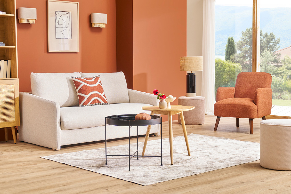 Le canapé PAULIN ne se contente pas d’être un simple canapé 2 places : il se transforme facilement en lit d’appoint (L188 x P120 cm), parfait pour accueillir des invités de dernière minute. Son mécanisme convertible est conçu pour une utilisation simple et rapide, permettant de passer du mode canapé au mode lit en quelques instants. Son assise et son dossier généreusement rembourrés garantissent un confort optimal, aussi bien en position assise qu’en mode couchage.