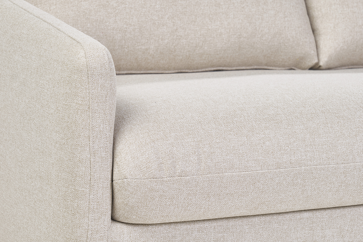 Canapé beige crème, livré monté. Le colis étant volumineux, nous vous conseillons de vérifier que portes et escaliers permettent son passage.