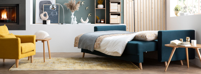 Véritable meuble deux en un, pratique et fonctionnel, la vedette des studettes et des intérieurs bien pensés, c’est lui : le canapé convertible. Pour optimiser votre espace de vie et gagner de la place au quotidien, pour passer des soirées conviviales et accueillir vos proches après le dîner, assise confortable ou agréable lit d’appoint, ce meuble gain de place et malin se transforme en un clin d’œil au gré de vos besoins. Accueillant canapé le jour, couchage pour 1 à 2 personnes la nuit, de quoi ravir les petites pièces de vie. Dans une chambre d’amis, un bureau ou un salon, faites votre choix parmi notre sélection de canapés d’angle convertibles, clic-clac et canapé BZ, aussi confortables que design. Pliez-dépliez et profitez en toute quiétude grâce à un de nos canapés lits confortables !