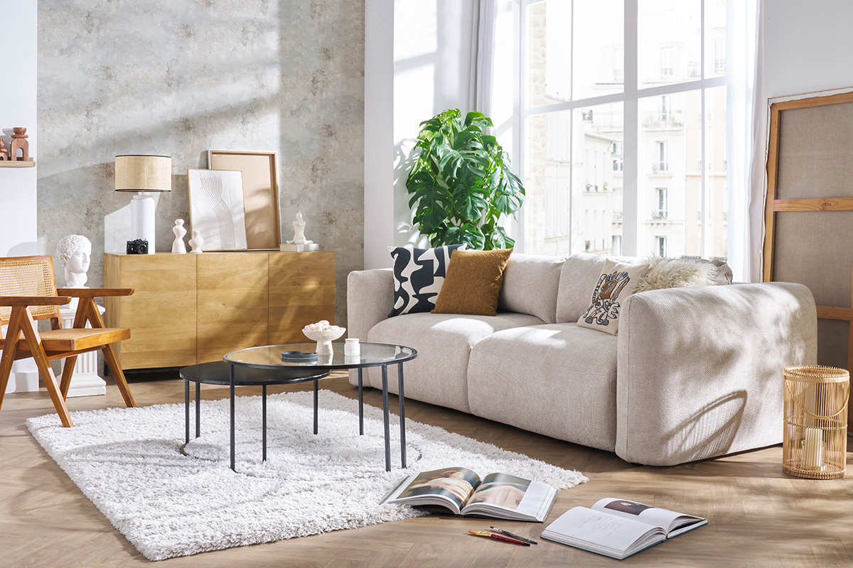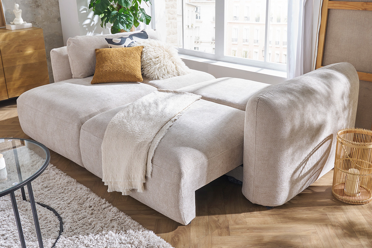 À l'allure chic et décomplexée, ce canapé beige fera du salon un véritable cocon. Avec prestance, il instaurera une ambiance cosy et moderne des plus trendy ! Mettez en valeur votre nouveau canapé convertible en l'associant à des meubles contemporains : un fauteuil en velours côtelé, un meuble TV blanc laqué, une table basse organique en bois foncé... L'identité forte de CRUSH lui permettra de sublimer toutes vos pièces de mobilier.