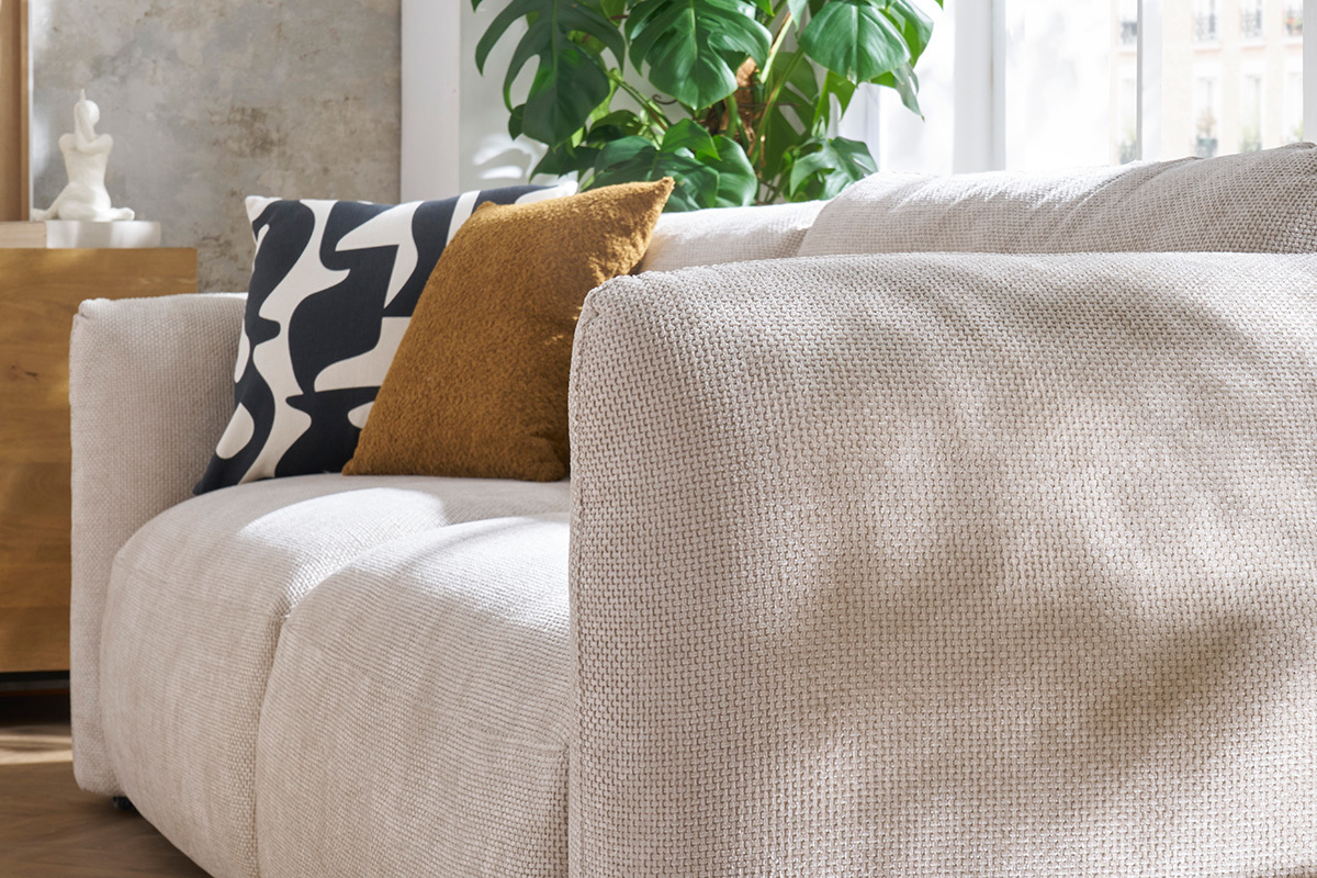 Le rembourrage généreux de ce canapé fabriqué en Europe offre un accueil agréable de jour... Comme de nuit ! Son garnissage combine mousse polyuréthane haute résilience , ouate et flocons de fibres pour un maximum de confort.