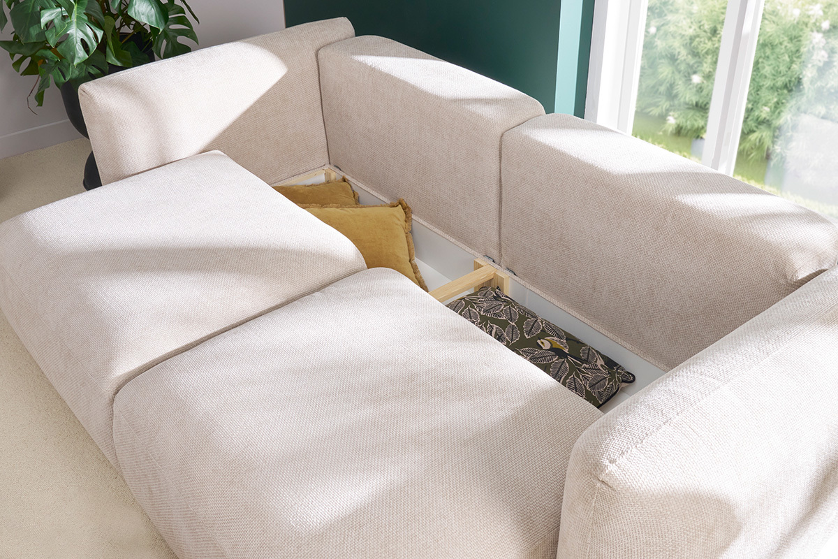 Vous accueillez du monde pour dormir ? En quelques secondes, transformez votre assise en canapé-lit capable d'accueillir 2 personnes (L150x L200 cm) ! Grâce à sa fonction lit d'appoint, ce canapé convertible permet d'optimiser l'espace astucieusement. Astucieux, CRUSH cache également sous son assise un petit coffre de rangement qui permettra de ranger plaids et coussins !