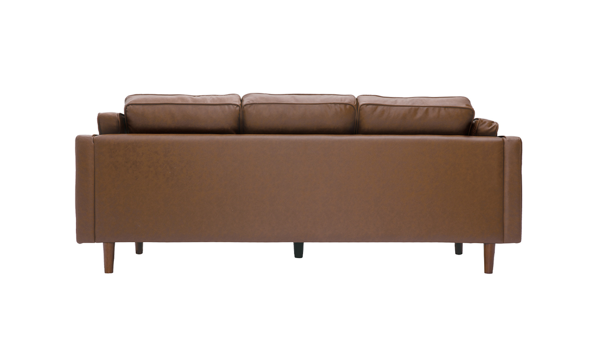 L'assise du canapé BRADLEY mesure 166 cm de long et peut accueillir jusqu'à 3 personnes. Sa profondeur et son épais rembourrage (mousse densité 35 KG/m3) garantissent un confort optimal. Le dossier (H48 cm) permet un excellent maintien du dos. Ce canapé vintage est également muni d'un cinquième pied central en plastique noir qui permet de renforcer un peu plus sa robustesse.