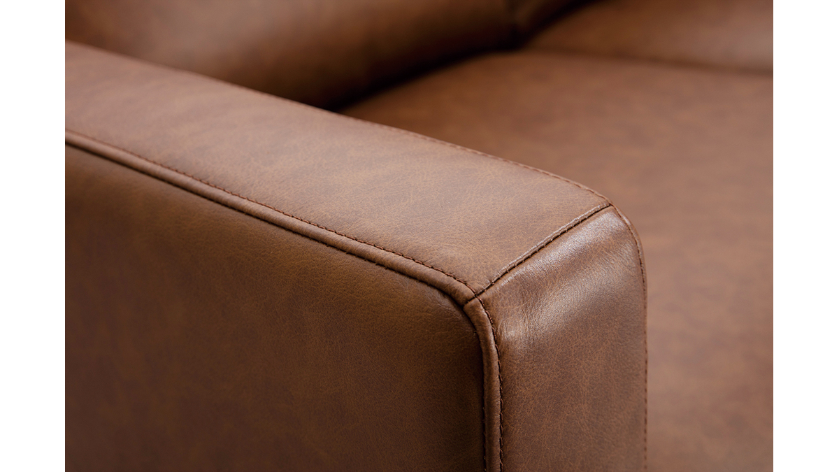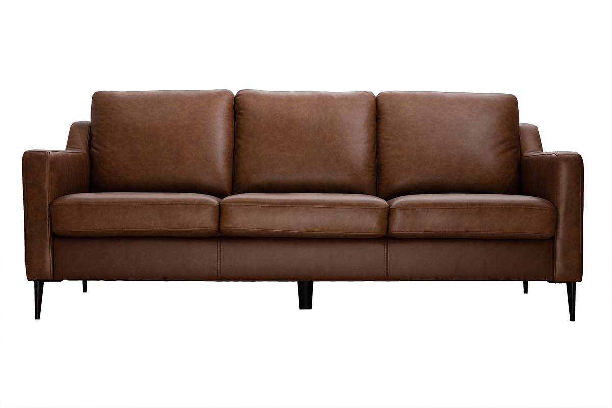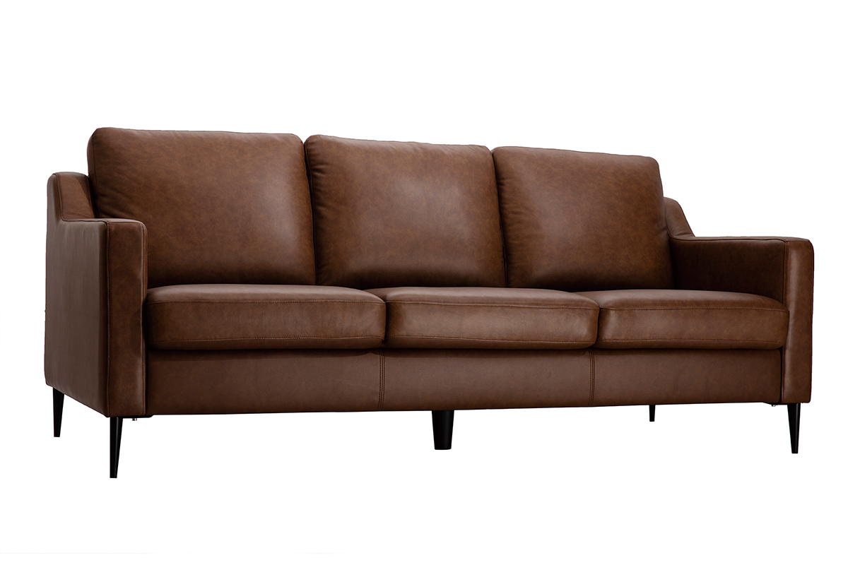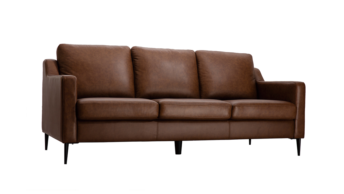 Avec ses trois coussins de dossier épais et son assise rembourrée, c'est le canapé 3 places idéal pour se détendre dans son salon après une longue journée. Sa couleur marron et son cuir de buffle lui donnent un léger style vintage très tendance. Pour un salon chaleureux aux accents rétro, accompagnez ce canapé d'une table basse vintage.