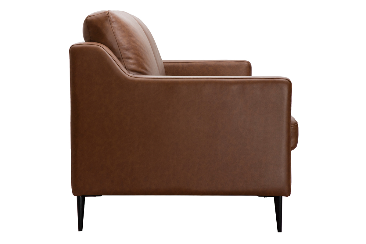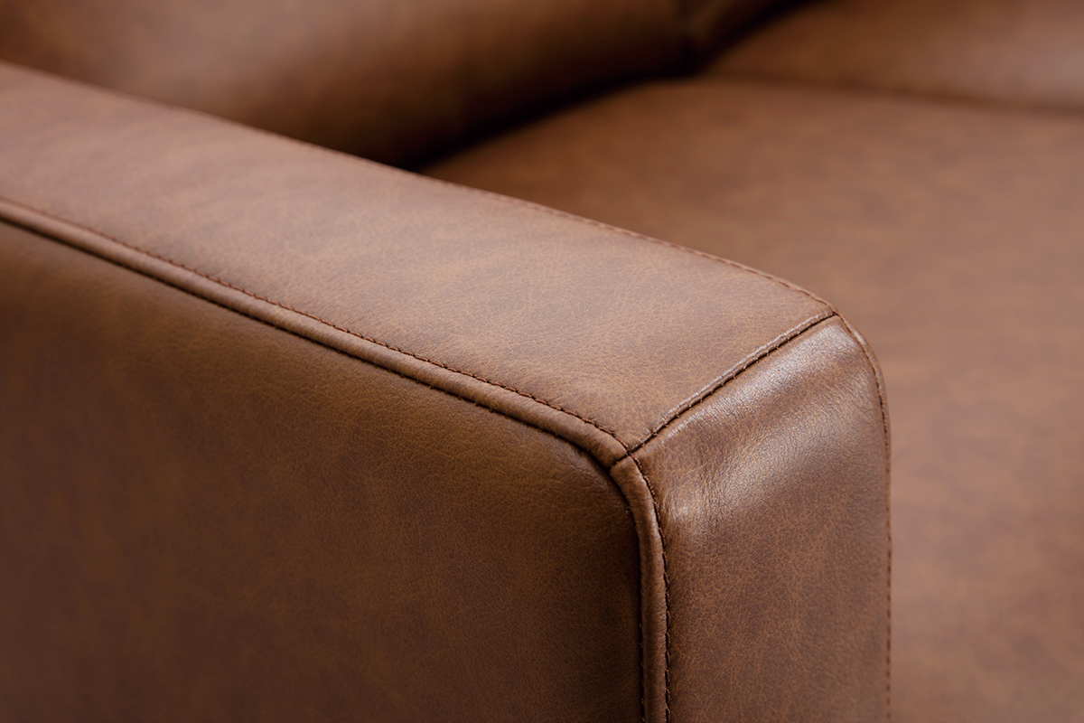 Le piétement en métal du modèle OXMO lui apporte un maintien et une solidité optimale. La forme des accoudoirs ainsi que celles des dossiers et des assises apportent un aspect chaleureux et cosy. Quant à son revêtement en cuir, il est gage de qualité et offre un rendu élégant.