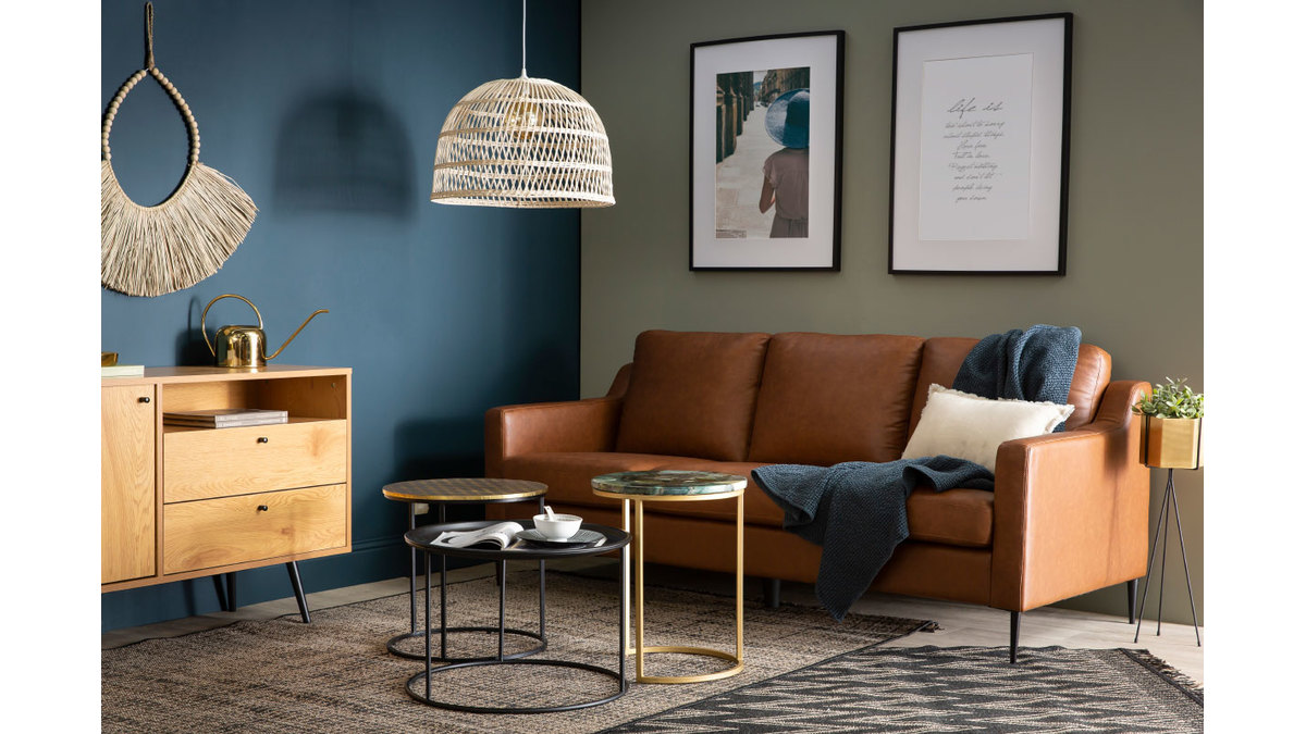 Les assises en cuir font partie de la liste des grands classiques en décoration intérieure. Nous vous invitons à vous installer sur notre canapé en cuir OXMO pour découvrir son confort et sa qualité. Pouvant accueillir jusqu'à 3 personnes, il offre la possibilité de passer un moment convivial dans une esthétique authentique et épurée.