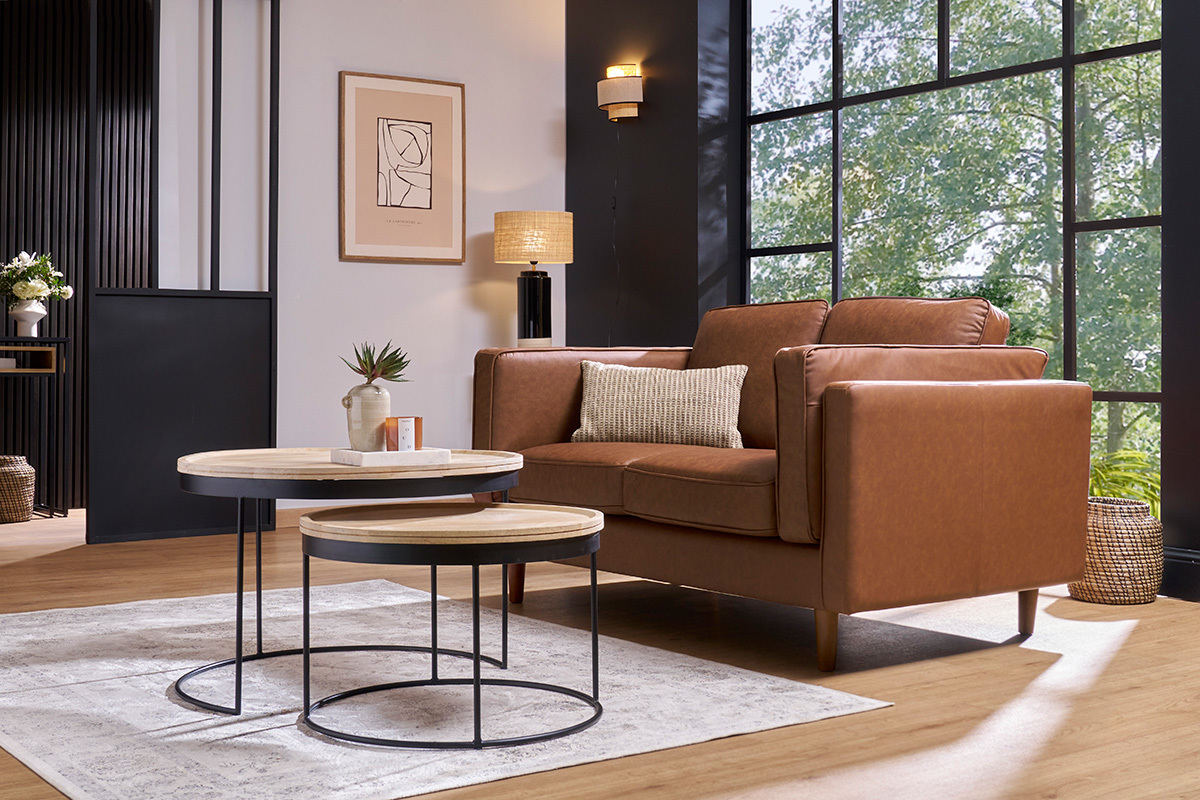Avec son joli style vintage, le canapé 2 places BRADLEY apporte beaucoup de caractère à une pièce de vie. Ses lignes pures et essentielles mettent en exergue le joli revêtement en cuir pleine fleur (cuir de buffle) de couleur cognac qui habille l'assise, le dossier et les accoudoirs internes. Bradley est un canapé fait pour durer. Ainsi, cette pièce au charme authentique s'enrichira des marques du temps accentuant ses reflets uniques.